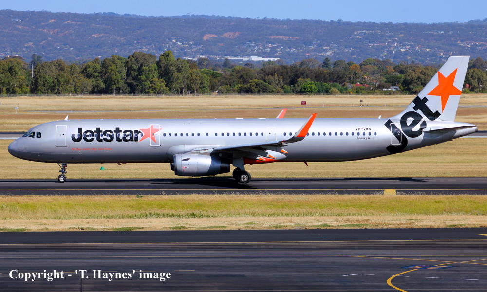 VH-VWN. Jetstar - in the standard livery at Adelaide West Beach Airport, May 28, 2024. (T. Haynes Copyright Image 0321-486.) |