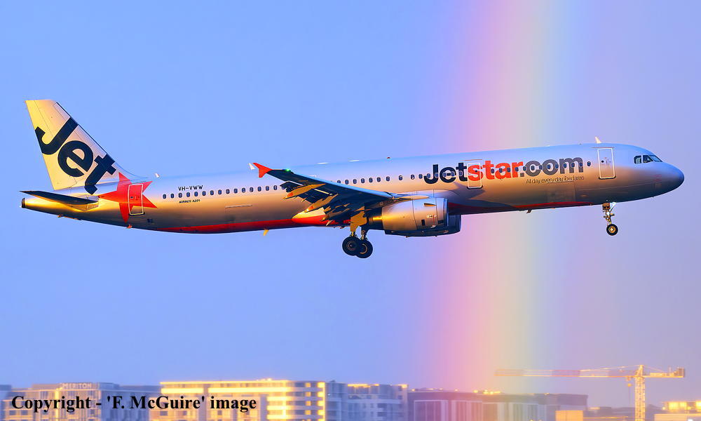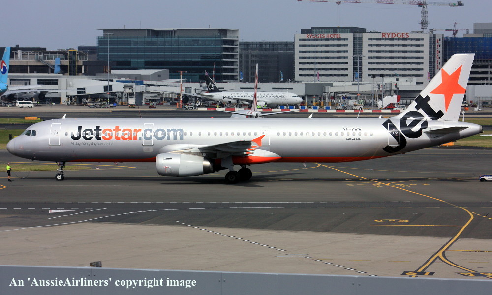 VH-VWW. Jetstar - in the standard livery at Sydney Kingsford Smith Airport, July 03, 2024. (F. McGuire Copyright Image 0321-492.) |