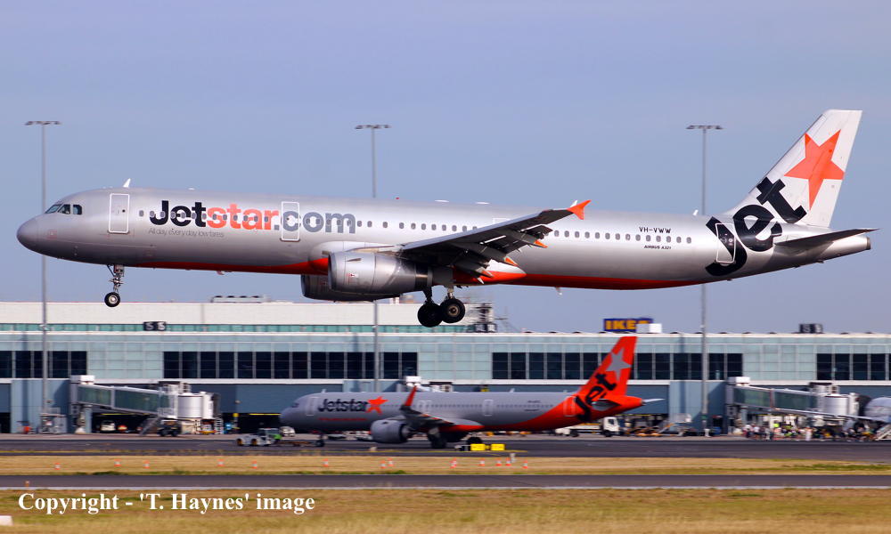 VH-VWW. Jetstar - in the standard livery at Sydney Kingsford Smith Airport, November 19, 2016. (T. Haynes Copyright Image 0320-792.) |
