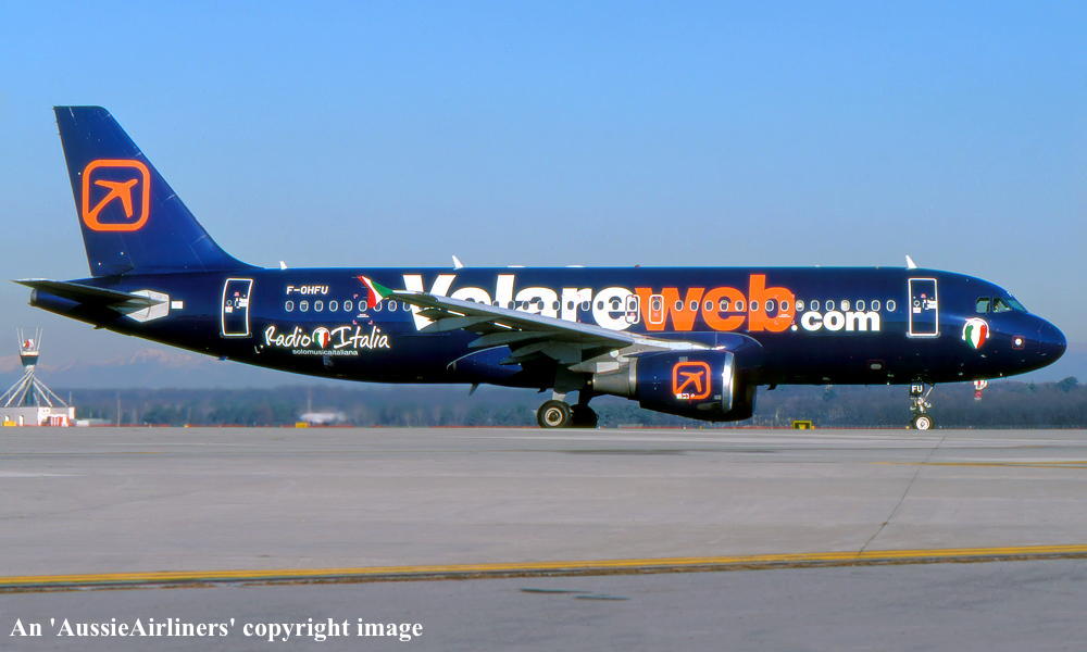 F-OHFU. Volare - in the revised livery with additional 'Radio Italia' titles at Milan Airport, January 2007. (R. N. Smith Collection Copyright Image 0320-170.) |