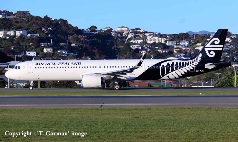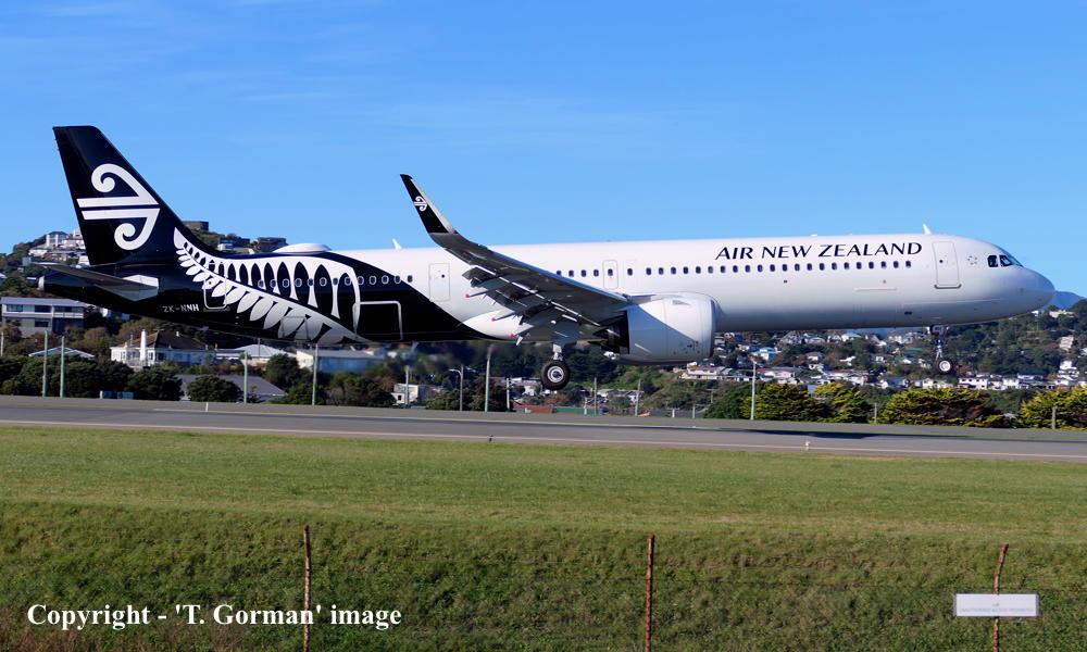 ZK-NNH. Air New Zealand - in the 'Silver Fern' livery at Wellington Airport, June 15, 2025. (T. Gorman Copyright Image 0321-650.) |