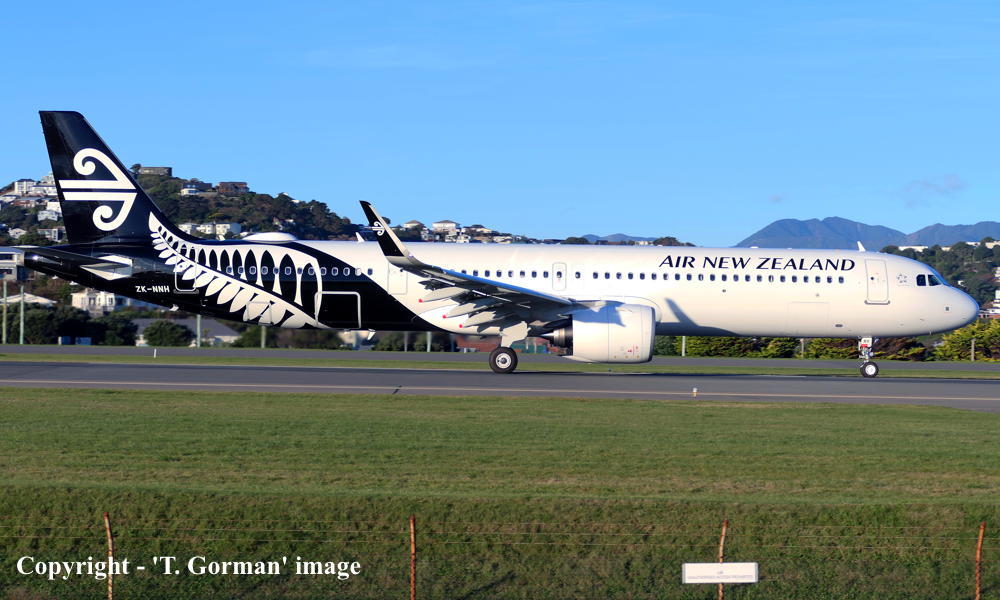 ZK-NNH. Air New Zealand - in the 'Silver Fern' livery at Wellington Airport, June 15, 2025. (T. Gorman Copyright Image 0321-649.) |