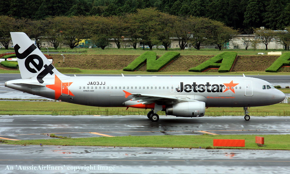 JA03JJ. Jetstar Japan - in the standard livery at Tokyo Narita Airport, September 16, 2015. (T. Haynes Copyright Image 0325-032.) |