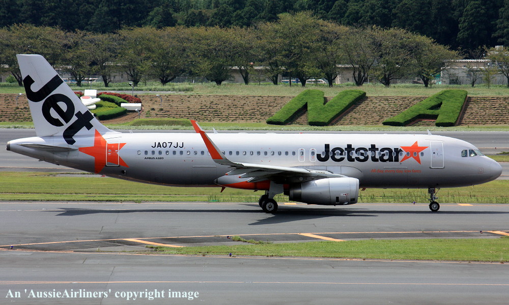 JA07JJ. Jetstar Japan - in the standard livery at Tokyo Narita Airport, September 18, 2015. (T. Haynes Copyright Image 0325-034.) |