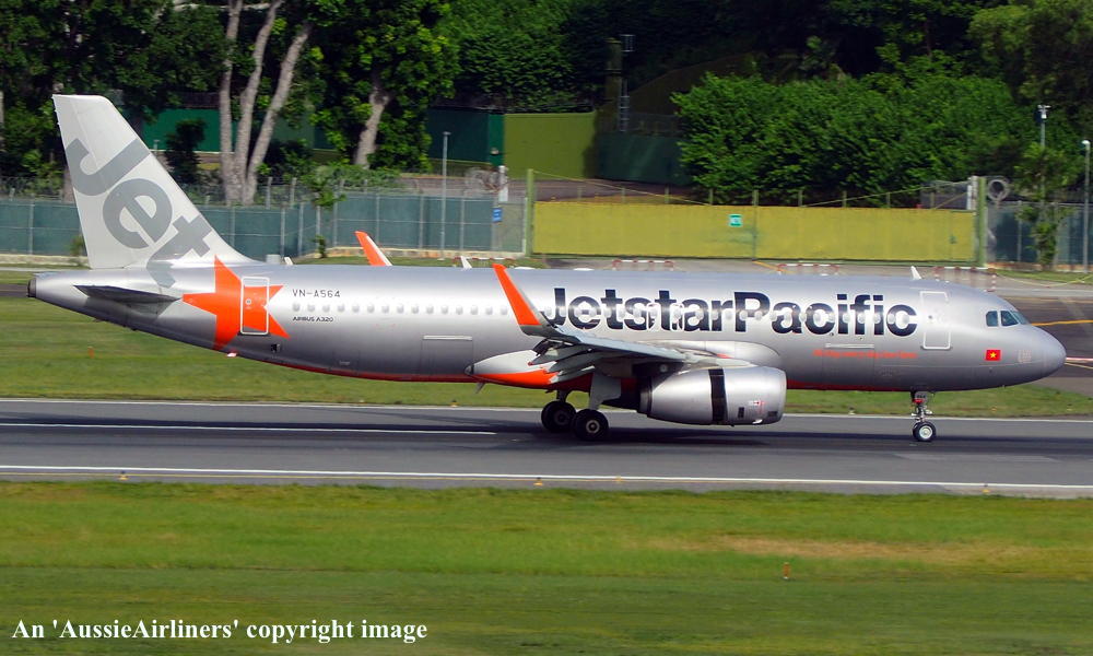 VN-A564. Jetstar Pacific - in the standard livery at Singapore Changi Airport, February 16, 2020. (T. Haynes Copyright Image 0325-216.) |
