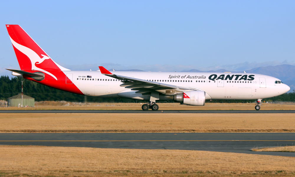VH-EBB. Qantas Spirit of Australia - 'Albany' in the 'New Roo' livery at Christchurch Airport, February 06, 2020. (Z. Rae Copyright Image 0330-307.) |