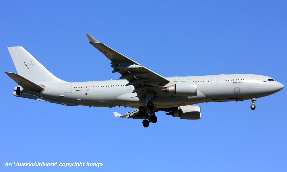 This aircraft was ordered new by CIT Aerospace International - ? Rolled off Airbus production line at Toulouse, France - 2007 Powered by General Electric GE CF6-80E1A3 engines First flown as 'F-WWYT' - December 17, 2007 Entered onto the Australian Aircraft Register as VH-EBH - December 24, 2007 Registered to CIT Aerospace International, Dublin, Ireland Accepted by CIT / Qantas Airways at Toulouse, France - January 13, 2008 Leased to Qantas Airways as the registered operator - January 13, 2008 The aircraft was named 'Hunter Valley' Departed Toulouse on the delivery flight to Australia as QF6008 - January 23, 2008 It arrived at Melbourne (Tullamarine) on completion of the delivery flight from France - January 25, 2008 Delivery route: Toulouse - Singapore - Melbourne Ferried Melbourne (Tullamarine) - Sydney (Kingsford Smith) as QF6006 - February 01, 2008 Operated its first revenue service Sydney (Kingsford Smith) - Mumbai (Bombay) as QF123 - February 01, 2008 Operated the final Qantas QF25/26 services on Auckland - Los Angeles - Auckland route - May 05 - 07, 2012 Operated final Qantas A330-200 service on Los Angeles - New York - Los Angeles route as QF107/108 - May 05, 2012 This route was now being serviced by Boeing 747-400 aircraft Operated its final revenue service Sydney (Kingsford Smith) - Singapore (Changi) as QF81 - May 12, 2015 Ferried Singapore (Changi) - Singapore (Seletar) as QF6010 - May 12, 2015 The aircraft entered heavy maintenance at Singapore (Seleta) prior to return to the lessor Royal Australian Air Force announced a further order for multi-role Airbus KC-30A MRTT aircraft - July 01, 2015 This aircraft was acquired for this contract The conversion to MRTT specifications will be undertaken by Airbus Defence and Space, Getafe, Spain Conversion to MRTT specifications to take some 10 - 12 months Air tested Singapore (Seletar) - Singapore (Seletar) - July 07, 2015 Ferried Singapore (Seletar) - Getafe as QF6017 - July 23, 2015 Returned to CIT Aerospace International on the termination of the Qantas lease Cancelled from the Australian Aircraft Register - July 28, 2015 Ferried Getafe - Madrid as 'MRTT 039' - December 16, 2016 It was observed at Ingolstadt Manching Air Force Base in a basic 'all-white' livery - March 14, 2017 Ferried Ingolsadt - Getafe in the 'Royal Australian Air Force' livery - April 20, 2017 Further conversion work was carried out on the airframe at Getafe Ferried Honolulu - Brisbane (Amberley AFB) using call-sign 'Alfa Echo Delta 339' - September 01, 2017 Entered onto the Australian Military Aircraft Register as A39-006 - ? Operated by No. 33 Squadron, 86 Wing, Amberley Air Force Base Current with the Royal Australian Air Force |