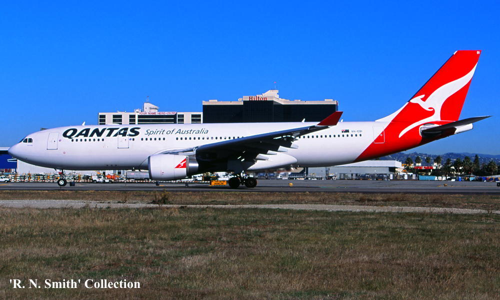 VH-EBI. Qantas Spirit of Australia - 'Yarra River' in the 'New Roo' livery at Los Angeles Airport, May 2009. (R. N. Smith Collection Copyright Image 0330-010.) |