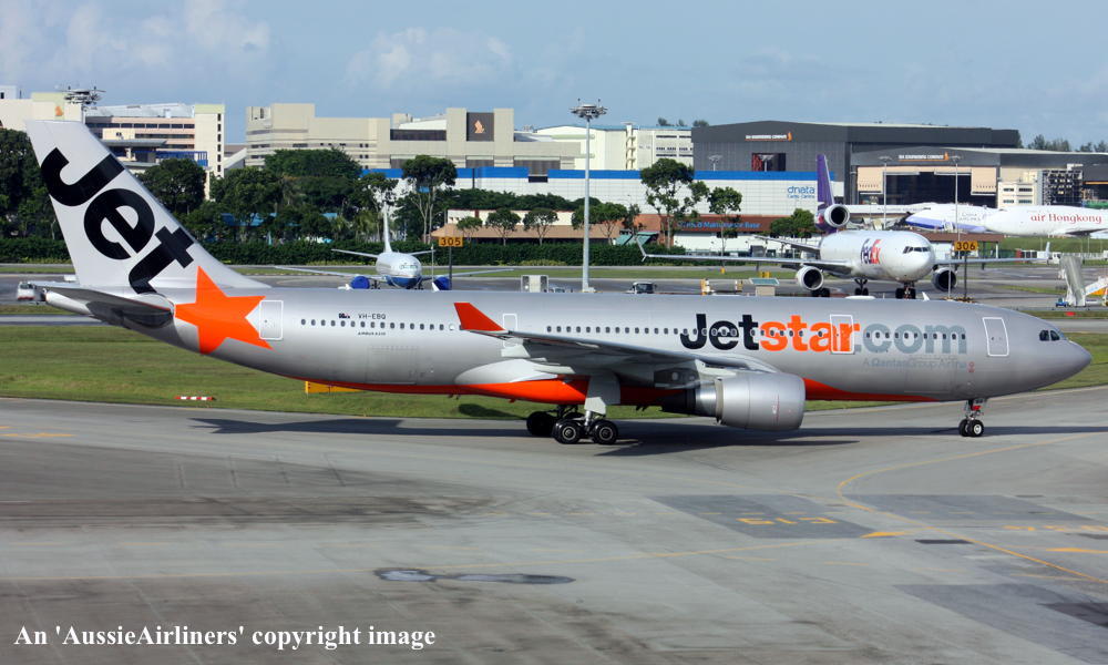 VH-EBQ. Jetstar - in the standard at Singapore Airport, December 20, 2012. (T. Haynes Copyright Image 0330-285.) |