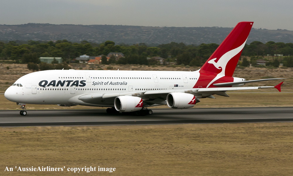 VH-OQG. Qantas Spirit Of Australia - 'Charles Ulm' in the 'New Roo' livery at Adelaide West Beach Airport, April 20, 2012. (R. Brown Copyright Image 0380-072.) |