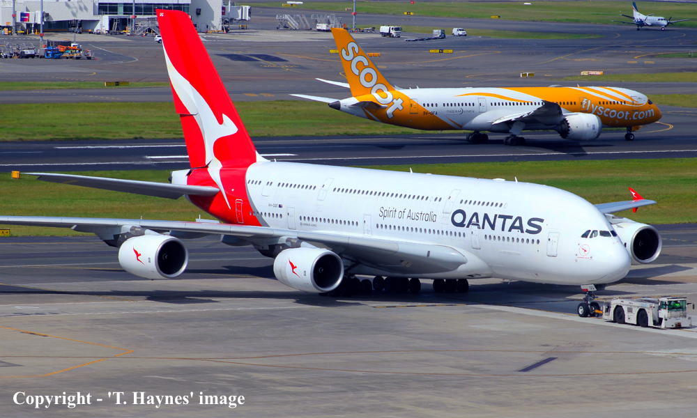 VH-OQG. Qantas Spirit Of Australia - 'Charles Ulm' in the 'New Roo' livery at Sydney Kingsford Smith Airport, January 29, 2016. (T. Haynes Copyright Image 0380-116.) |