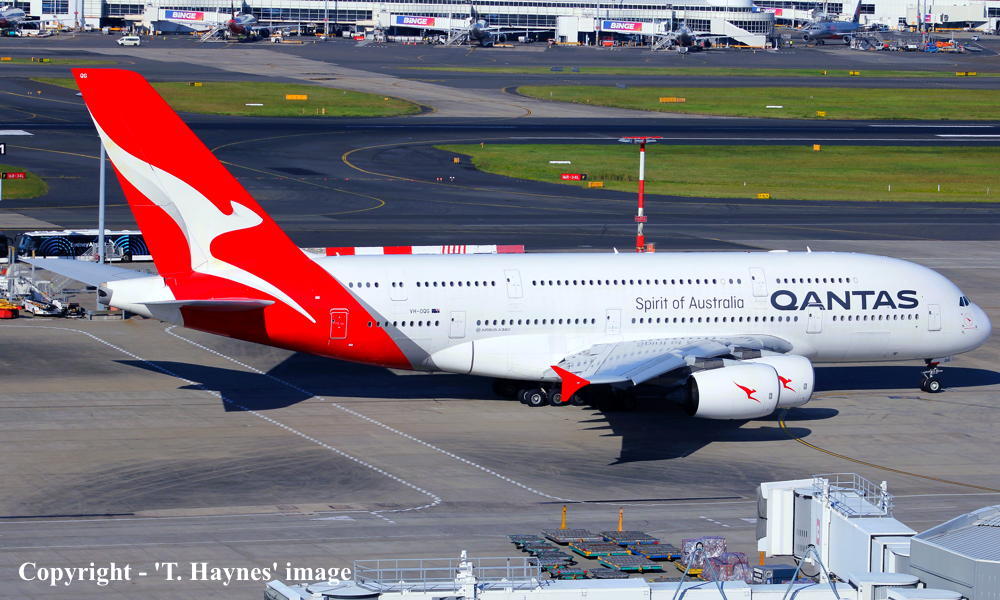 VH-OQG. Qantas Spirit Of Australia - 'Charles Ulm' in the 'New Roo' livery at Sydney Kingsford Smith Airport, March 08, 2014. (T. Haynes Copyright Image 0380-139.) |