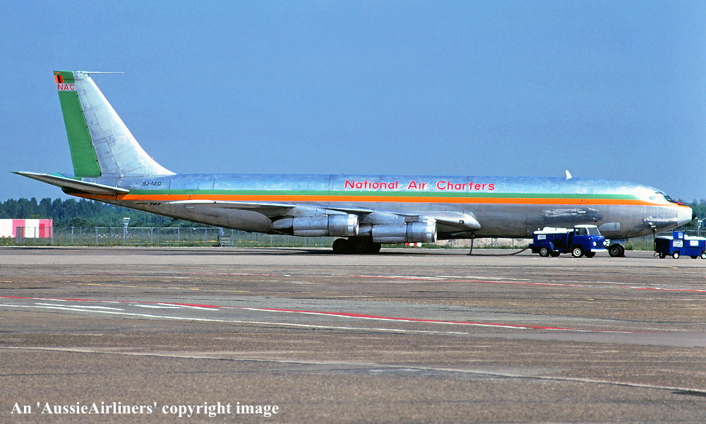 9J-AEQ. NAC National Air Charters - in the standard livery at Amsterdam Schiphol Airport, date unknown. (R. N. Smith Collection Copyright Image 4607-142.) |