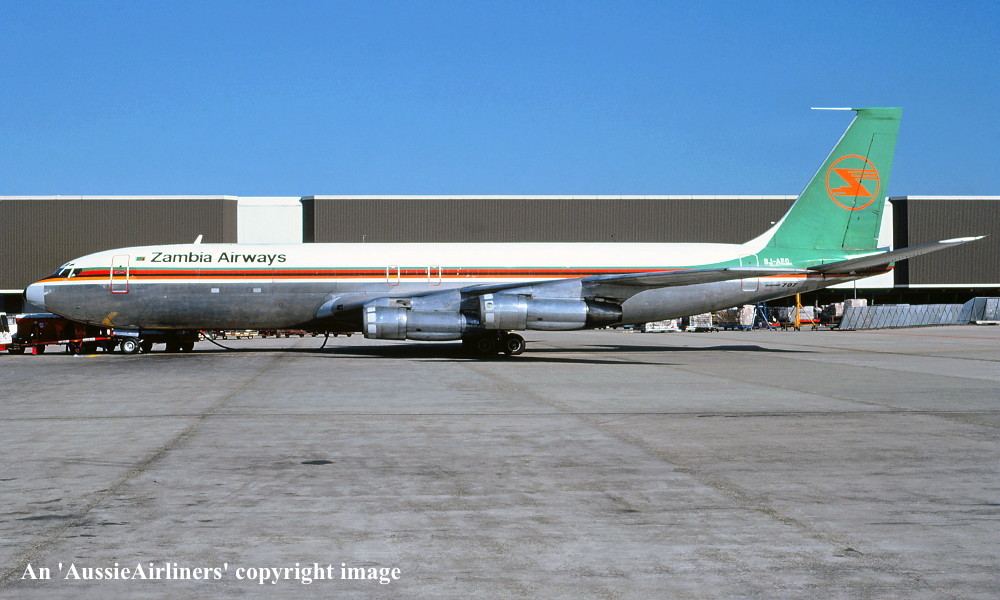 9J-AEQ. Zambia Airways - in the standard livery at an unknown airport, July 1984. (R. N. Smith Collection Copyright Image 4607-143.) |