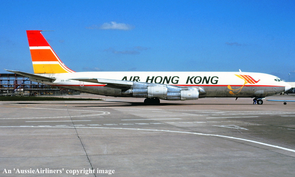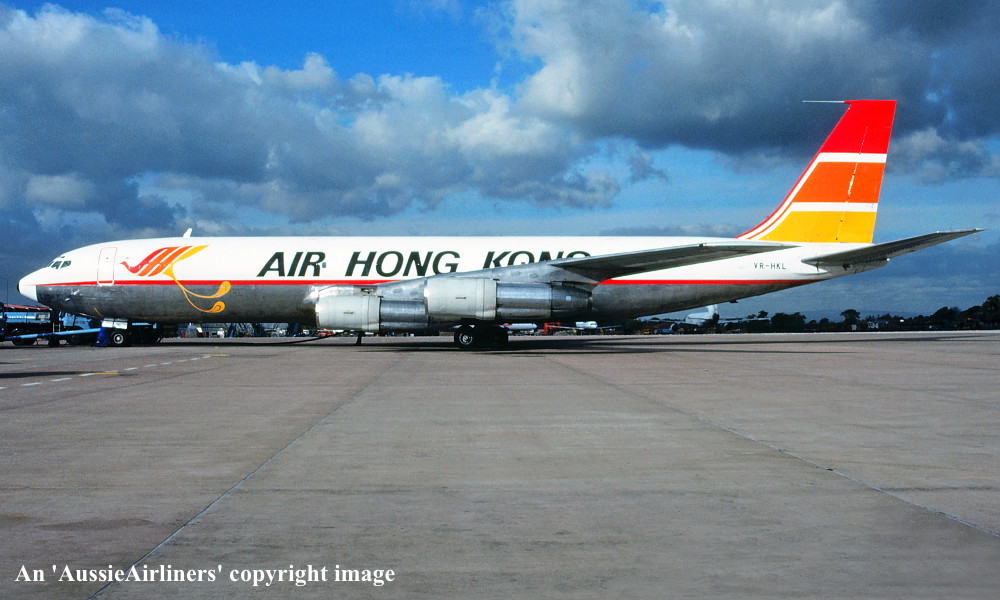 VR-HKL. Air Hong Kong - in the standard livery at an unknown airport, November 1989. (R. N. Smith Collection Copyright Image 4607-193.) |