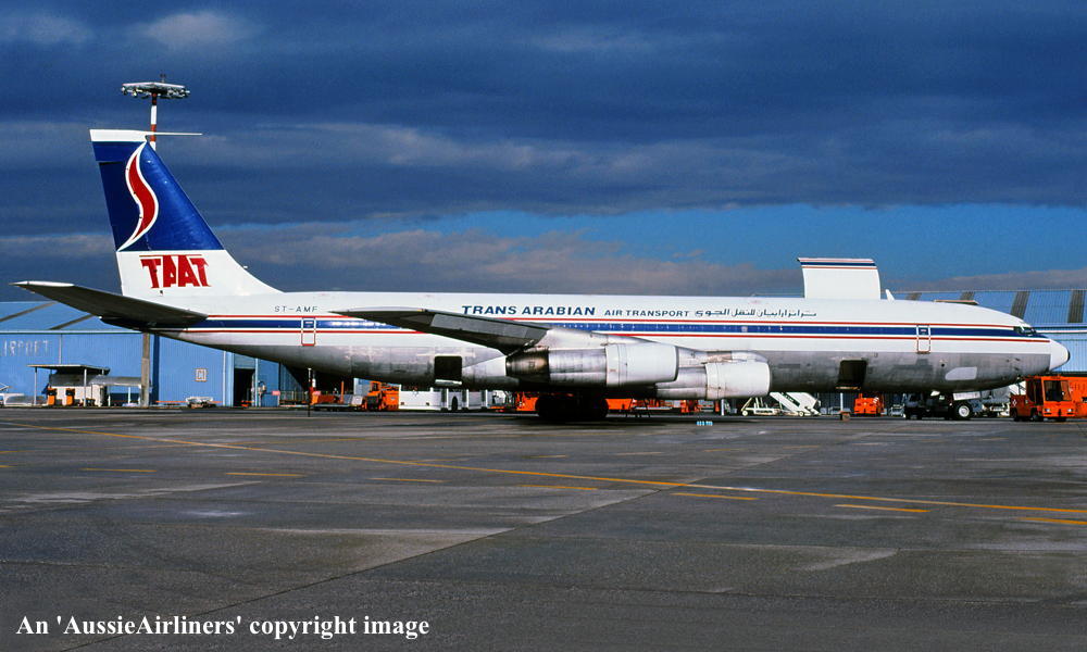 ST-AMF. TAAT Trans Arabian Air Transport - in the standard livery at an unknown airport, November 1996. (A. Cini Copyright Image 4607-499.) |