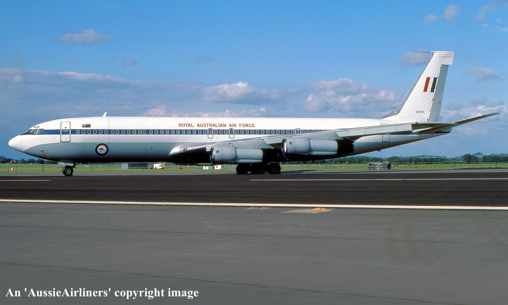 This aircraft was ordered new by Saudia Arabian Airlines - ? Entered onto the Saudi Aircraft Register as HZ-ACG - ? Rolled off the Boeing production line at Seattle (Renton) - September 1975 First flown as HZ-ACG - September 29, 1975 Powered by Pratt & Whitney JT3D-3B engines It was accepted by Saudi Arabian Airlines at Seattle (Renton) - October 14, 1975 Withdrawn from use and stored at Davis Monthan - ? Sold to the Boeing Military Airplane Company Ltd - July 13, 1987 Issued with tempory registration 'N1987B' Sold to the Royal Australian Air Force - February 25, 1988 It arrived at Sydney (RAAF Richmond) on completion of the delivery flight from the United States - March 11, 1988 Entered onto the Australian Military Aircraft Register as A20-103 Operated by No. 33 Squadron in the transport role This aircraft was destoyed during a training flight at East Sale, Victoria - October 29, 1991 The aircraft stalled and crashed into the sea killing the five crew members on board Crash attributed to a simulation of asymmetric flight resulting in a sudden and violent departure from controlled flight Flight crew: Aircraft Captain Squadron Leader Mark Lewin; co-pilot Flight Lieutenant Tim Ellis; Third pilot Flight Lieutenant Mark Duncan; Flight Engineer Warrant Officer Jon Fawcett; Loadmaster Warrant Officer Al Gwynne To view further details on this accident please click 'HERE' To view 'You Tube' video related to this accident including news reports please click 'HERE' |