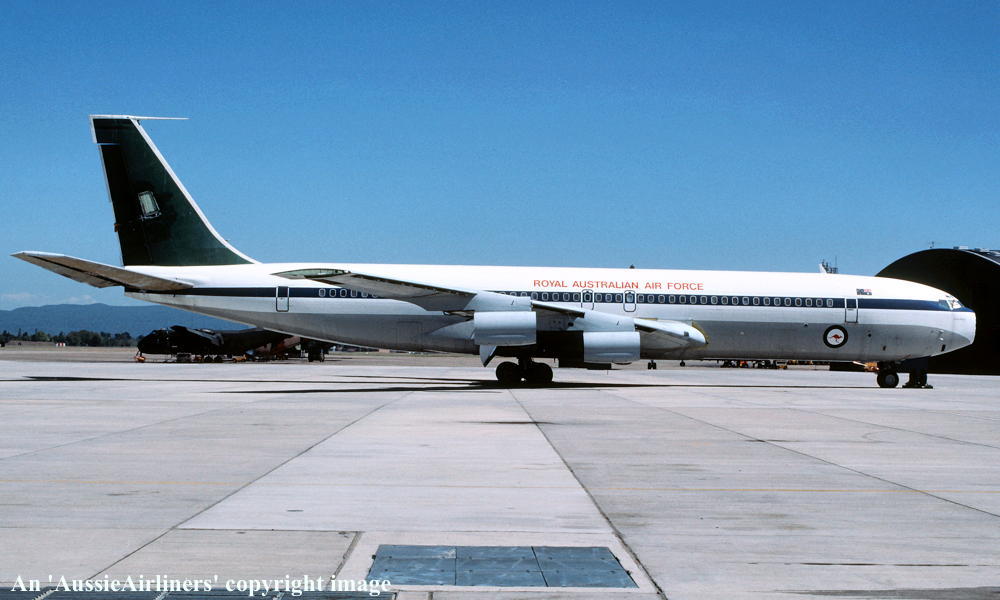 This aircraft was ordered new by Saudi Arabian Airlines Entered onto the Saudi Aircraft Register as HZ-ACC - ? Rolled off the Boeing production line at Renton - December 1967 First flown as HZ-ACC - December 13, 1967 Powered by Pratt & Whitney JT3D-3B engines Delivered to Saudi Arabian Airlines - January 08, 1968 Withdrawn from use and stored at Davis Monthan - ? Sold to Boeing Military Airplane Company Ltd - July 13, 1987 It was issued the tempory registration 'N1486B' Sold to the Royal Australian Air Force - February 25, 1988 It arrived at Sydney (Richmond) on completion of its ferry flight - March 16, 1988 It was allocated the RAAF serial of 'A20-809' but this serial number was not applied to the aircraft This aircraft did not enter RAAF service as it was acquired for spare parts only RAAF titles were applied to the airframe to make it look less conspicuous It was stripped of all useful parts at Sydney (Richmond) with the fuselage used as a training aid Tender document No 94/20021 issued for the sale of unserviceable airframe at RAAF Base Richmond Closing date of Tender - April 20, 1994 Airframe was sold and broken up on site for scrap |