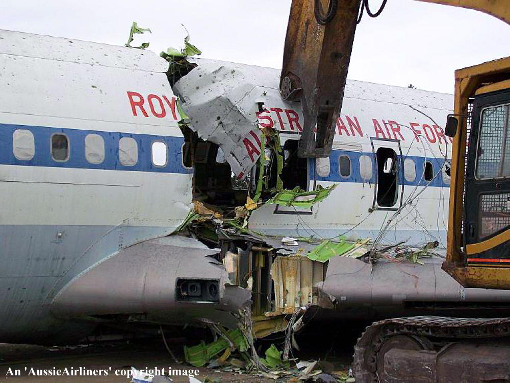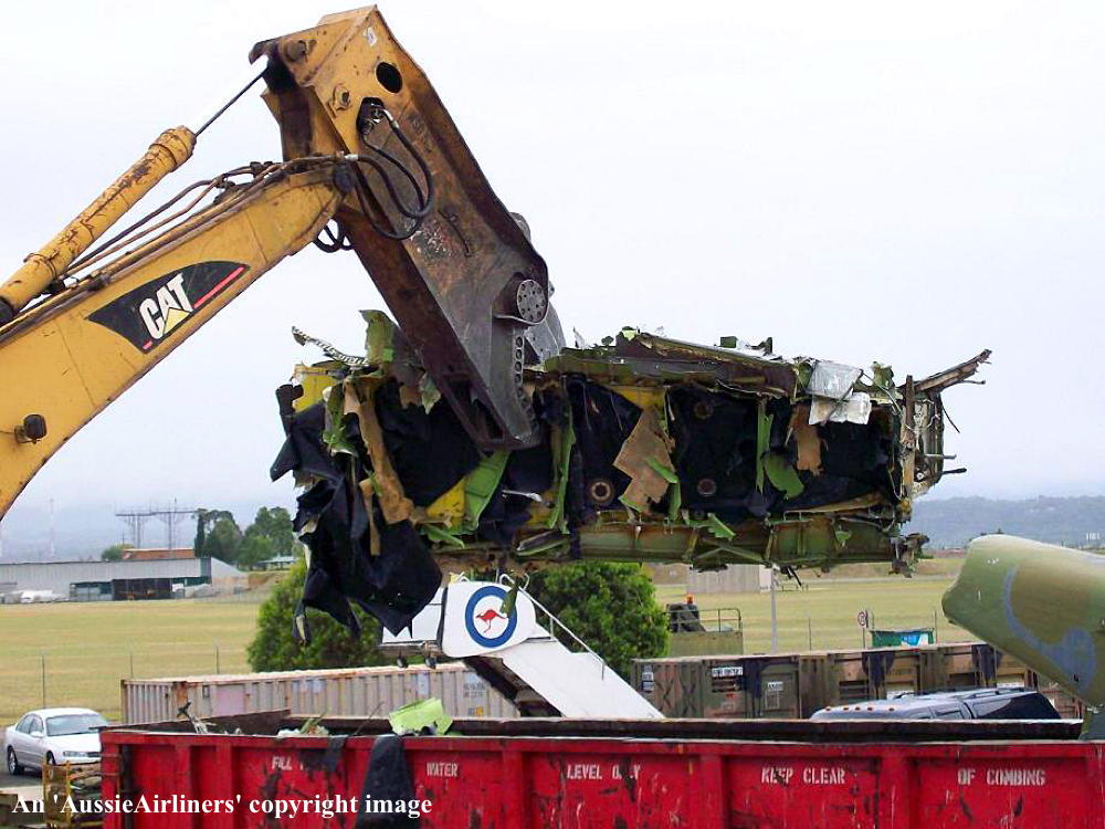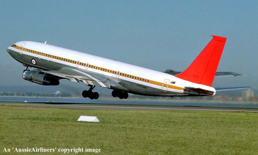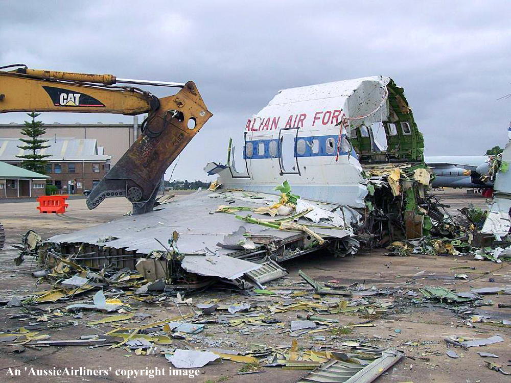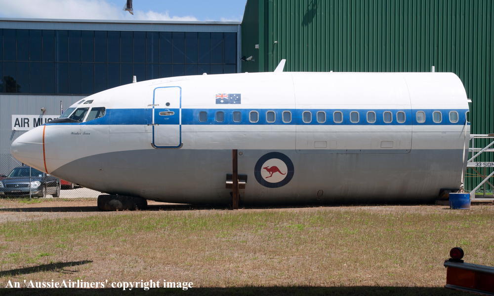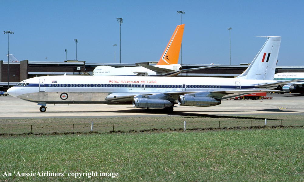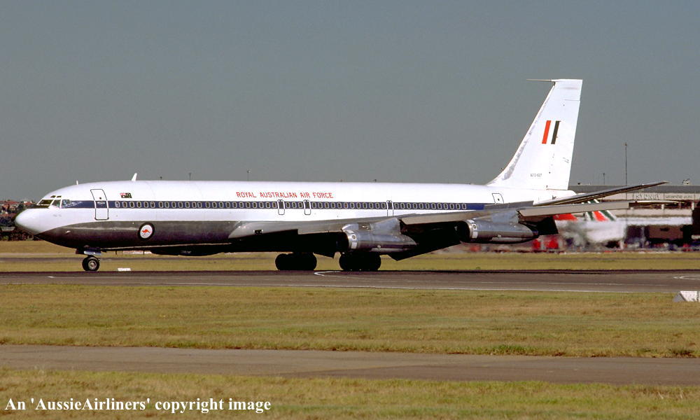This aircraft was ordered new by Qantas Airways - ? Rolled off the Boeing production line at Seattle (Boeing Field) - April 02, 1968 First flown at Seattle as 'VH-EAG' - April 30, 1968 Entered onto the Australian Aircraft Register as VH-EAG - May 16, 1968 Registered to Qantas Airways Ltd, Sydney Accepted by B. Langevad for Qantas Airways at Seattle (Boeing Field) - May 16, 1968 It was the 31st Boeing airliner delivered new to Qantas Airways The aircraft was named 'City of Hobart' Departed Seattle (Boeing Field) on the delivery to Australia as QF051D - May 16, 1968 It arrived at Sydney (Kingsford Smith - 15:38 local) on completion of the delivery flight - May 18, 1968 Delivery route: Seattle - Honolulu - Sydney Flight crew: Captains C. G. Fox, L.W. Clarke; S/O M. Q. Blackley (HNL-SYD); N/O R. Chivers, W. B. Short (HNL-SYD); F/E E. W. Fargas; Flight Steward R. C. Curley It was the first Boeing 707 to land at Melbourne (Tullamarine) Airport (Captain D. Harden) - June 11, 1968 It conducted publicity and courtesy flights whilst in Melbourne Operated its first revenue service Sydney - Brisbane - Auckland - Sydney - June 23, 1968 It was renamed 'Alice Springs' - February 22, 1974 Utilised on Cyclone Tracey relief flight and evacuated 271 passengers from Darwin - December 27, 1974 Utilised on Cyclone Tracey relief flight and evacuated 226 passengers from Darwin - December 29, 1974 Operated final 707 service Sydney - Brisbane - Port Morseby - Brisbane - Sydney route as QF95/96 - February 2, 1979 It operated an Antarctic Sceninc flight departing Adelaide (West Beach) - February 13, 1979 Operated the last Qantas 707 service on the Sydney - Christchurch - Sydney route - March 24, 1979 Operated the final scheduled Qantas 707 service Sydney - Auckland - Sydney as QF50/51 - March 25, 1979 This flight was under the command of Captains P. Oakley & G. Molloy Conducted a special 1 hour charter flight Sydney - Sydney (Captain J. Blair) - March 25, 1979 Operated an unscheduled service Sydney (Kingsford Smith) - Melbourne (Tullamarine) as QF16 - March 26, 1979 This last revenue flight carried 104 passengers stranded in Sydney by an air traffic controllers strike Operated the final Qantas 707 flight Melbourne (Tullamarine) - Sydney (Kingsford Smith) as QF16P - March 26, 1979 This flight carried 4 passengers and was under the command of Captain A. Wickes Sold to the Royal Australian Air Force Cancelled from the Australian Aircraft Register - March 30, 1979 The aircraft had flown 38,013 hours with 14,498 cycles Handed over to R. A. A. F. in basic Qantas livery with R. A. A. F. roundels at Sydney (Kingsford Smith) - April 07, 1979 Entered onto the Australian Military Aircraft Register as A20-627 Issued to No 33 Squadron for transport duties Repainted into the R. A. A .F. VIP livery ? The aircraft was named 'Windsor Town' Converted to tanker configuration - ? Retired from service and stored at Sydney (RAAF Richmond) - February 21, 2001 The aircraft had flown a total of 50,234 hours of which 12,175 hours were in RAAF service Used as a source of parts for the remaining R. A. A. F. Boeing 707 fleet Intended to be sold to Omega Air, U. S. A. along with the other decommissioned RAAF Boeing 707s It was observed stored at Sydney (RAAF Richmond) - 2009 Scrapped at Sydney (RAAF Richmond) - November 23, 2009 The cockpit section was not scrapped and has been donated to HARS, Wollongong, N.S.W. for display |