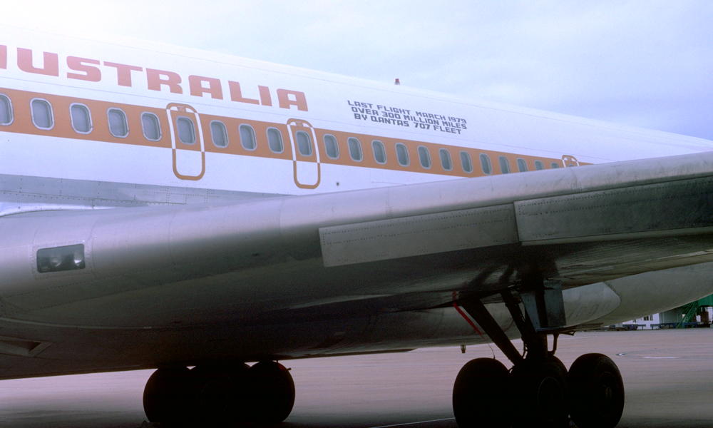 VH-EAG. Qantas Australia - 'Alice Springs' in the 'ochre' livery with additional 'Last Flight' inscription at Sydney Kingsford Smith Airport, March 27, 1979. (Qantas Heritage Collection Copyright Image 4605-292.) |