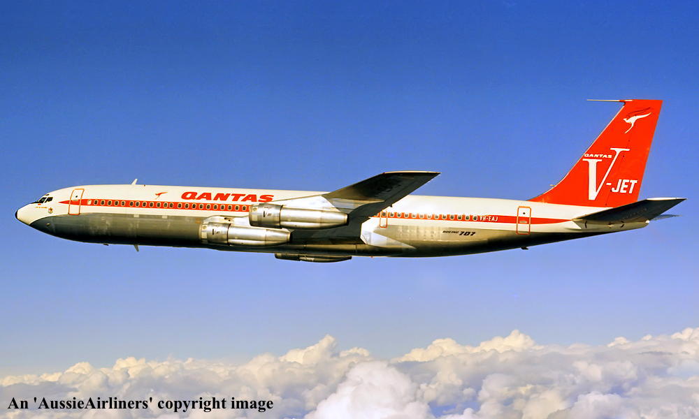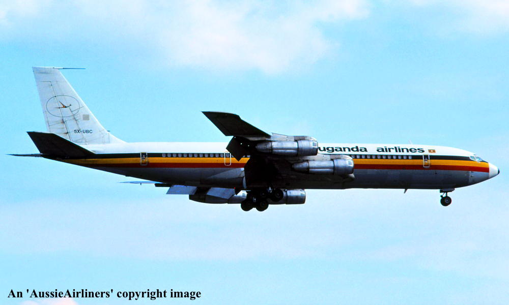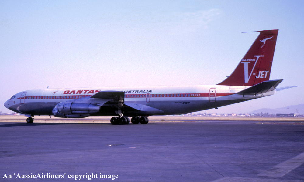 VH-EAJ. Boeing 707-338C. c/n 19630-746. Was also registered as: G-BDSJ; 5X-UBC. |