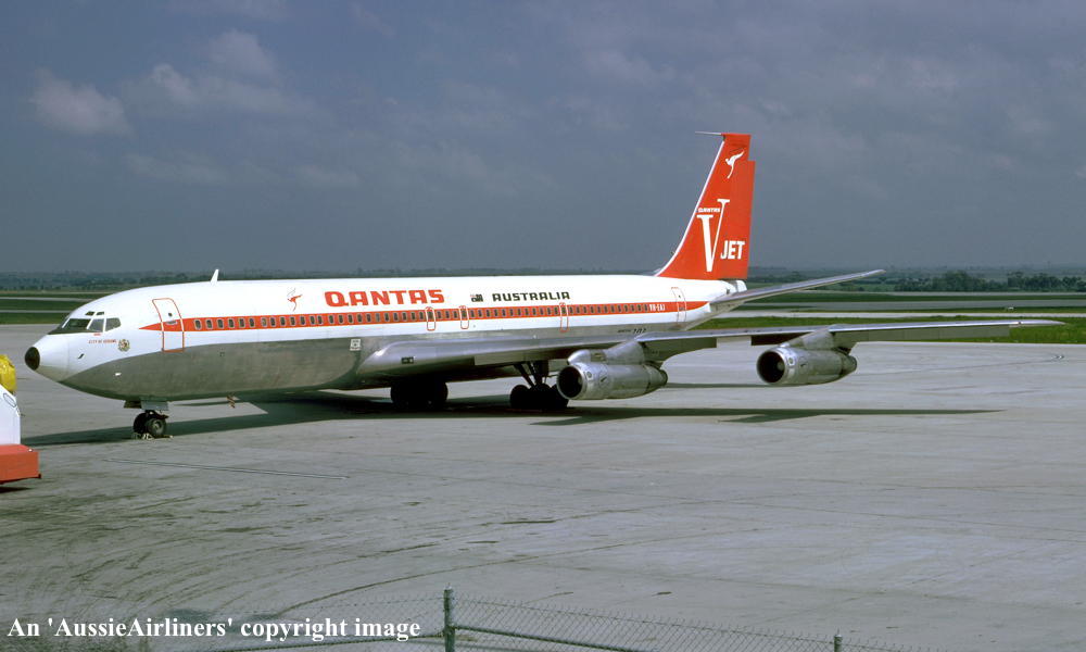 VH-EAJ. Qantas Australia - 'City of Geelong' in the 'V-jet' livery at Melbourne Tullamarine Airport, April 1973. (R. N. Smith Collection Copyright Image 4604-362.) |
