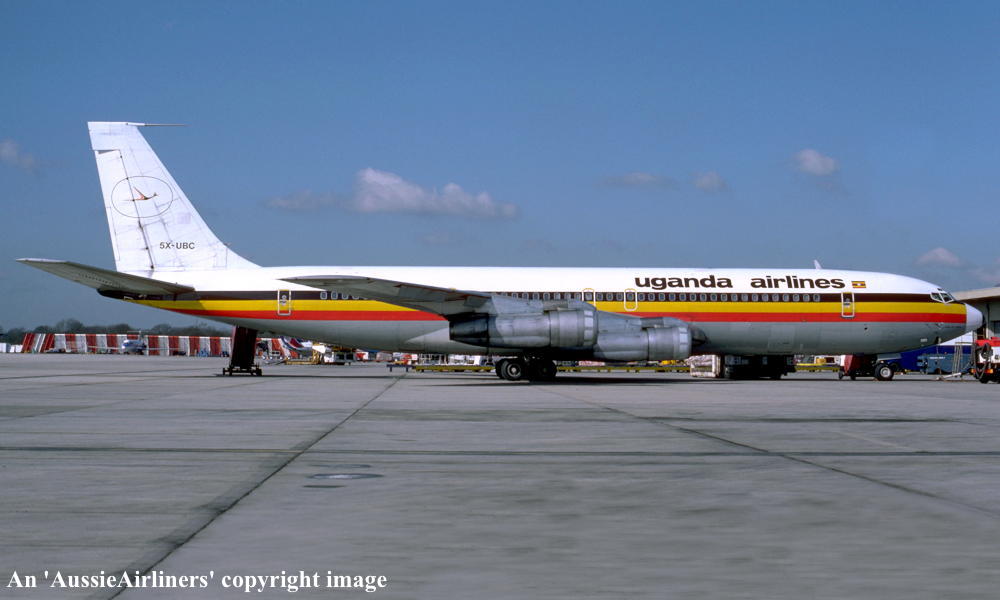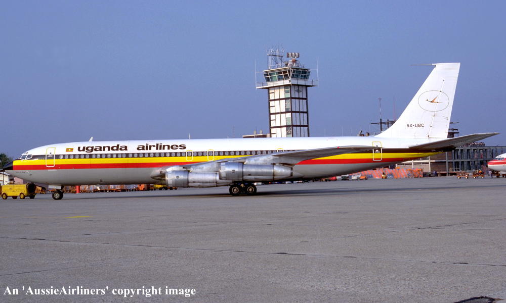 5XUBC. Uganda Airlines - in the standard livery at an unknown airport, December 1982. (R. N. Smith Collection Copyright Image 4604-363.) |