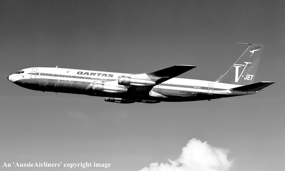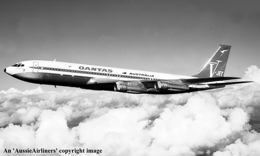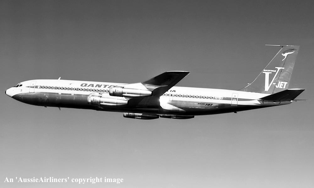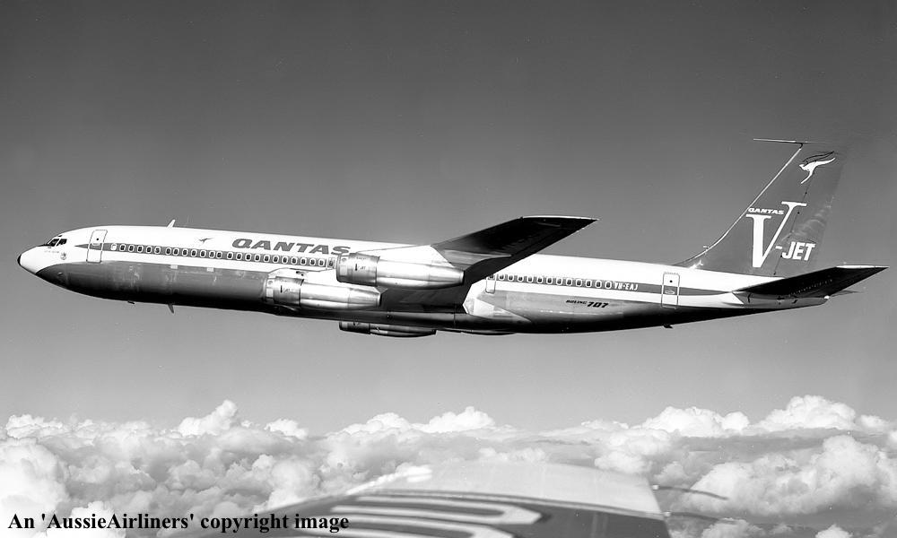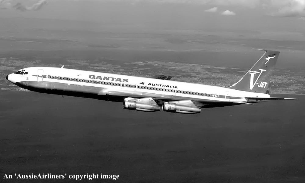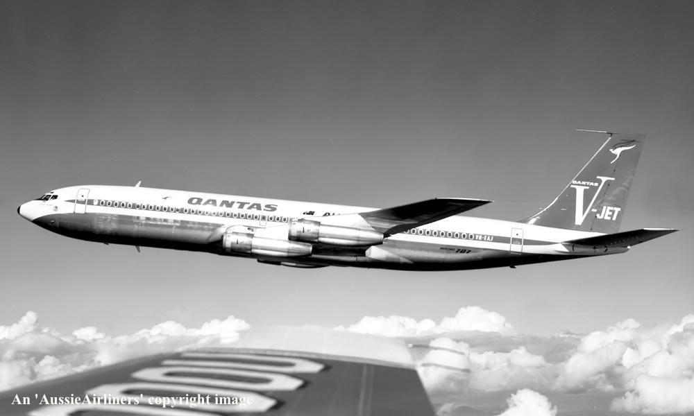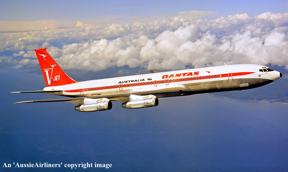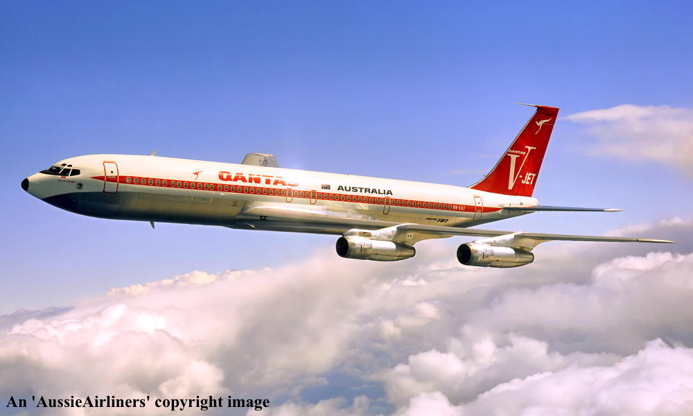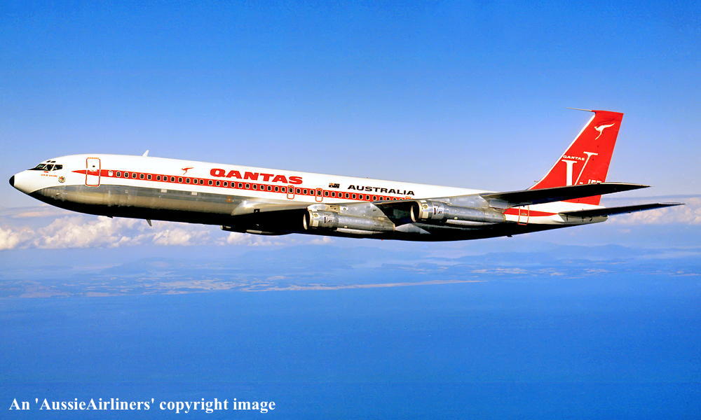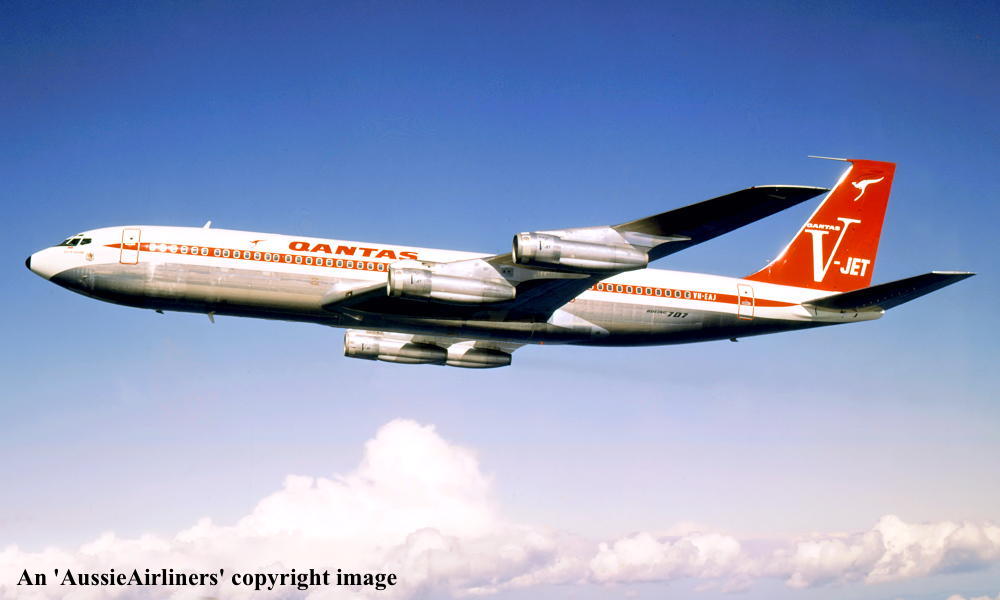 VH-EAJ. Qantas Australia - 'City of Geelong' in the 'V-jet' livery over Washington State, September 1968. (Qantas Heritage Collection Copyright Image 4605-036.) |