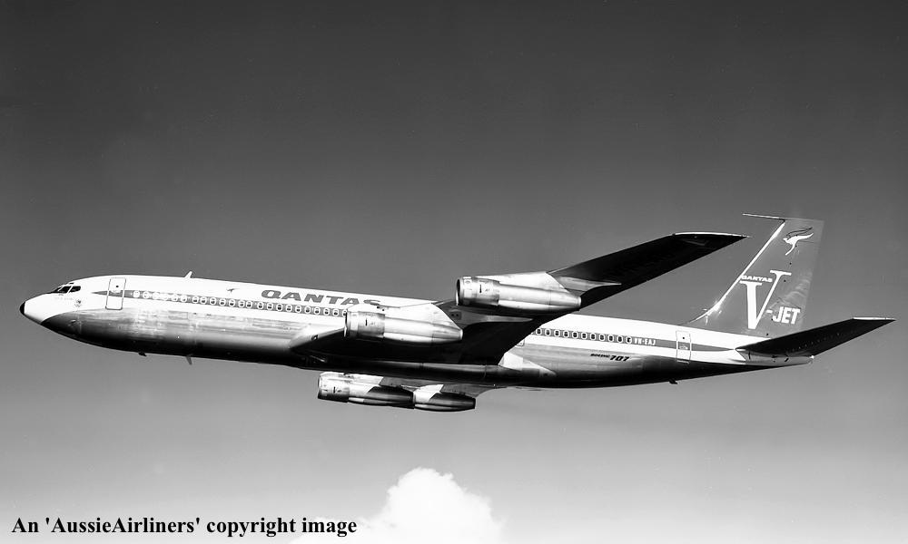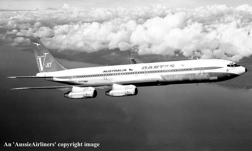 VH-EAJ. Qantas Australia - 'City of Geelong' in the 'V-jet' livery over Washington State, September 1968. (Qantas Heritage Collection Copyright Image 4604-710.) |