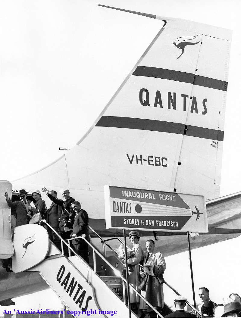 VH-EBC. Qantas Australia's Overseas Airline - 'City Of Canberra'. (R. N. Smith Collection Copyright Image 4605-392.) |
