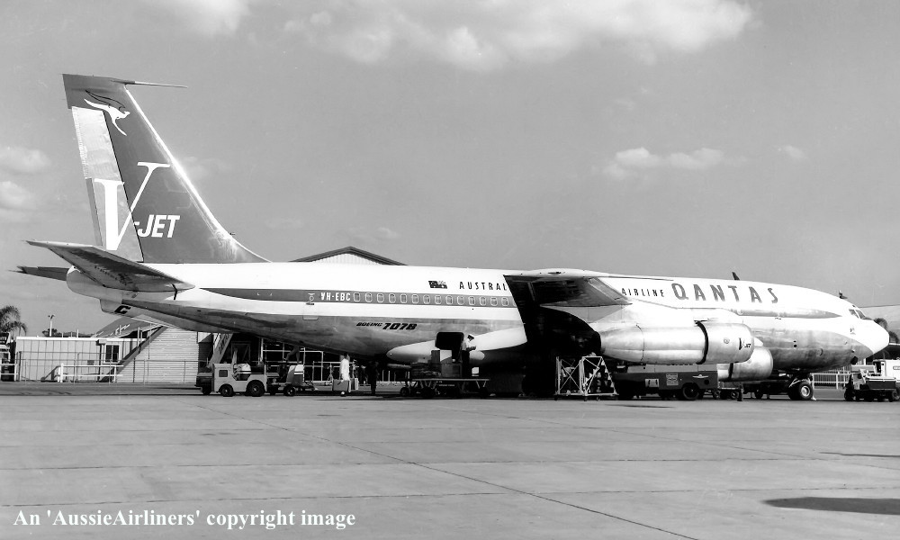 VH-EBC. Boeing 707-138. c/n 17698-44. Was also registered as: N791SA. |