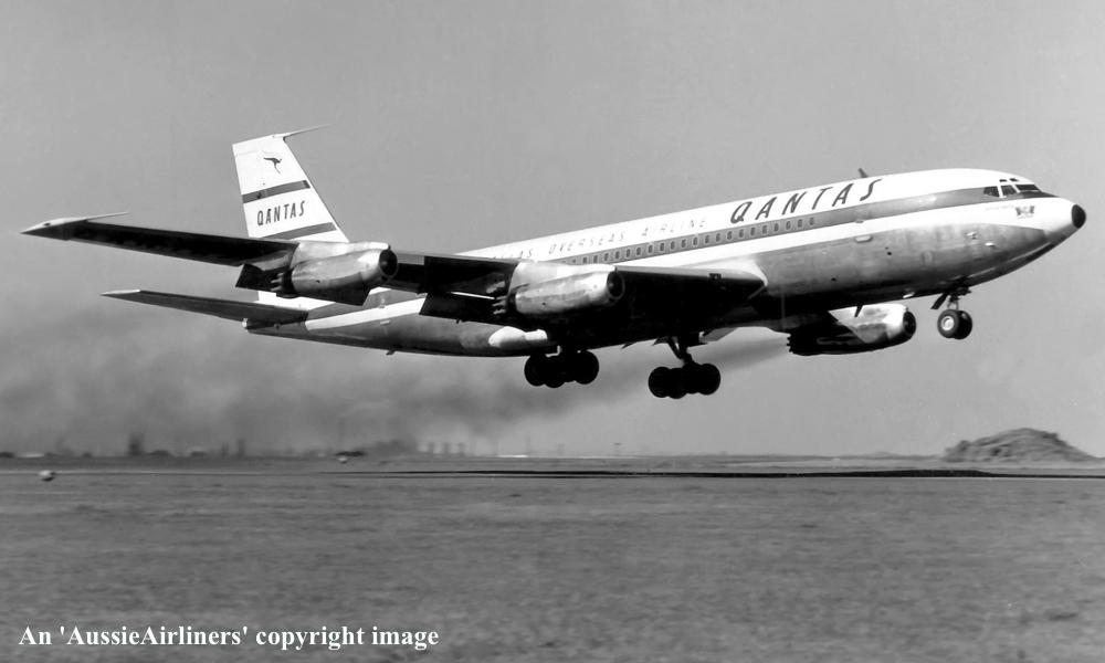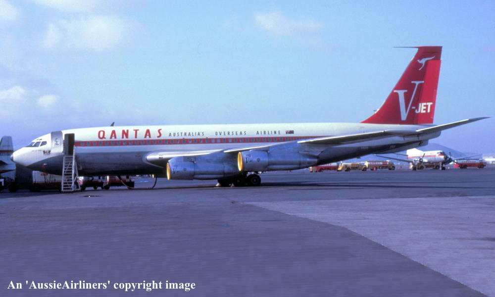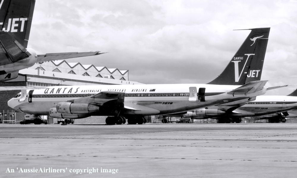 VH-EBE. Boeing 707-138. c/n 17700-59. Was also registered as: N793SA; CF-PWW; VP-BDE; N793NA. |
