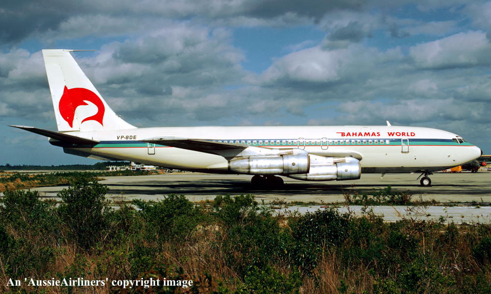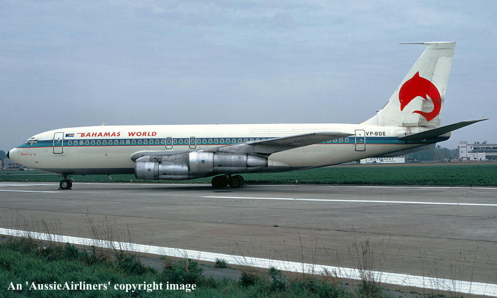 VP-BDE. Bahamas World - in the standard livery at an unknown airport, August 1972. (R. N. Smith Collection Copyright Image 4604-322.) |