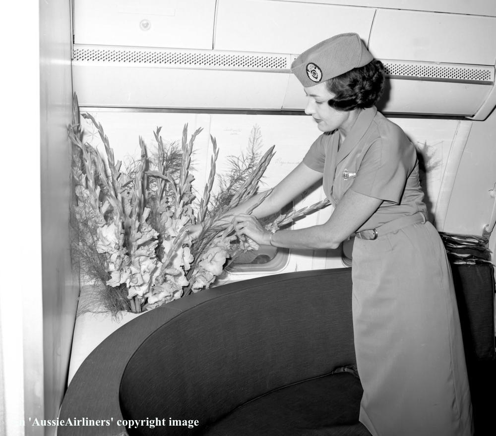 VH-EBE. Qantas Australia's Overseas Airline - 'City of Perth' in the 'V-Jet' livery at Sydney Kingsford Smith Airport, February 1963. The interior layout for the Royal Tour by Queen Elizabeth II. (Qantas Heritage Collection Copyright Image 4605-186.) |