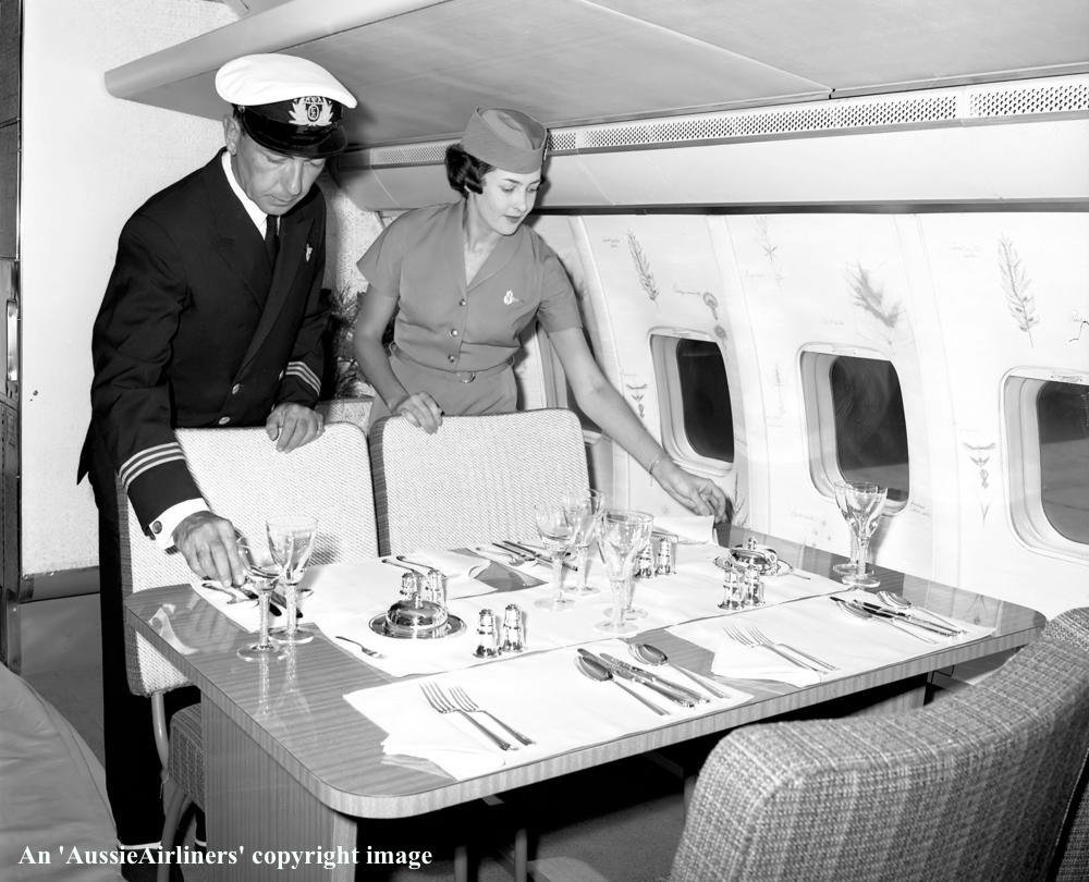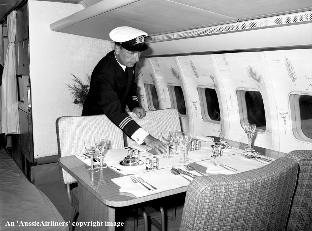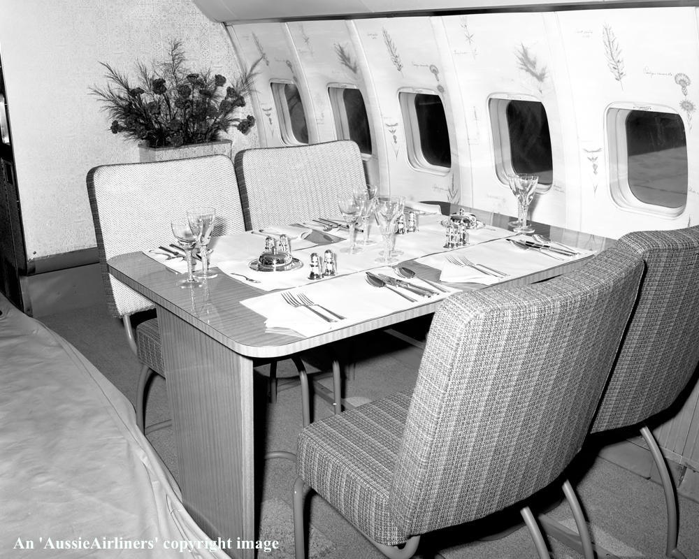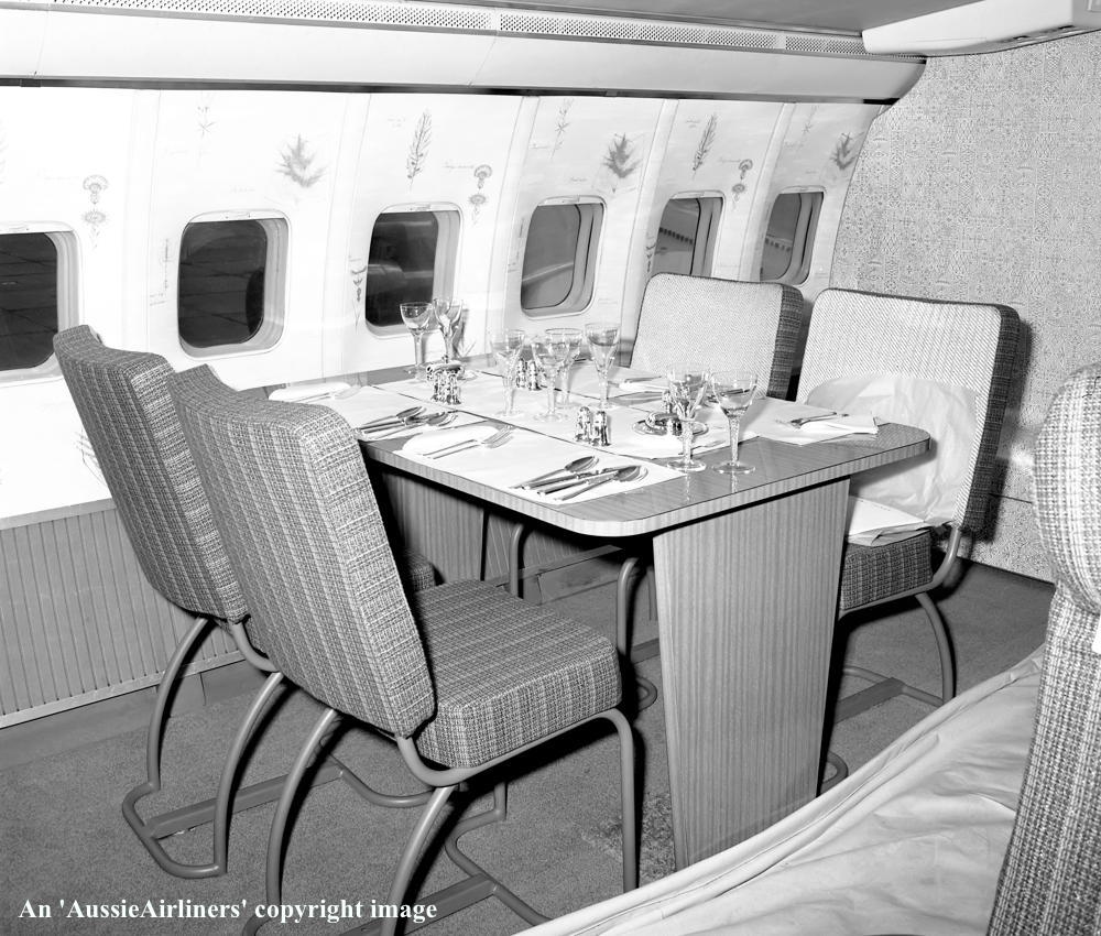 VH-EBE. Qantas Australia's Overseas Airline - 'City of Perth' in the 'V-Jet' livery at Sydney Kingsford Smith Airport, February 1963. The interior layout for the Royal Tour by Queen Elizabeth II. (Qantas Heritage Collection Copyright Image 4605-188.) |