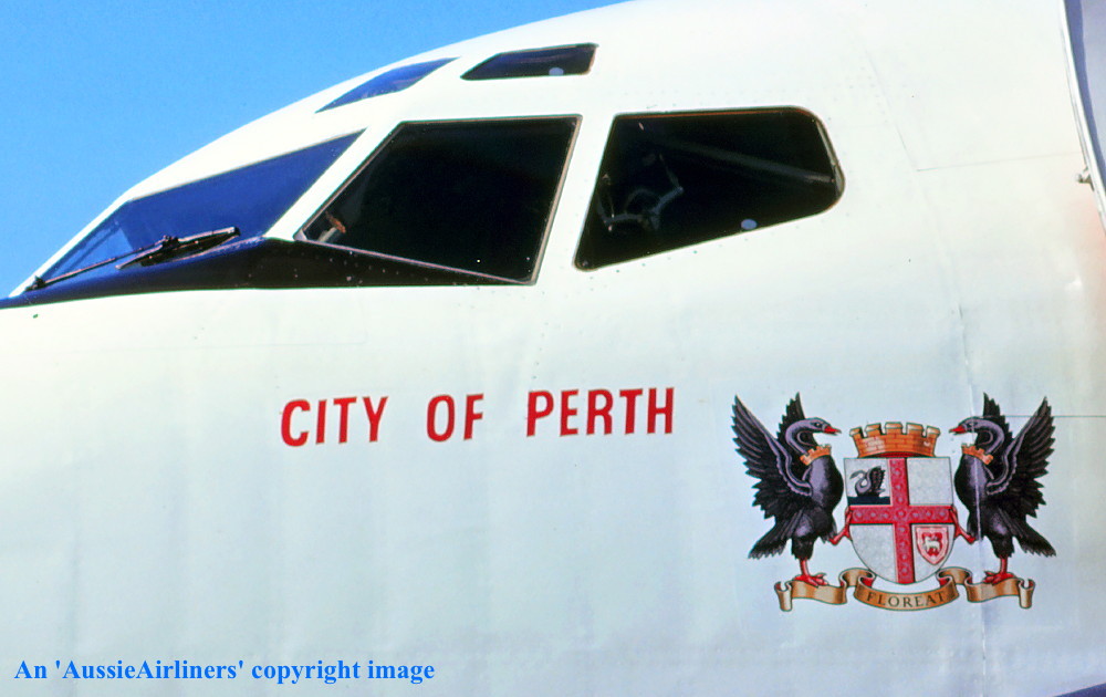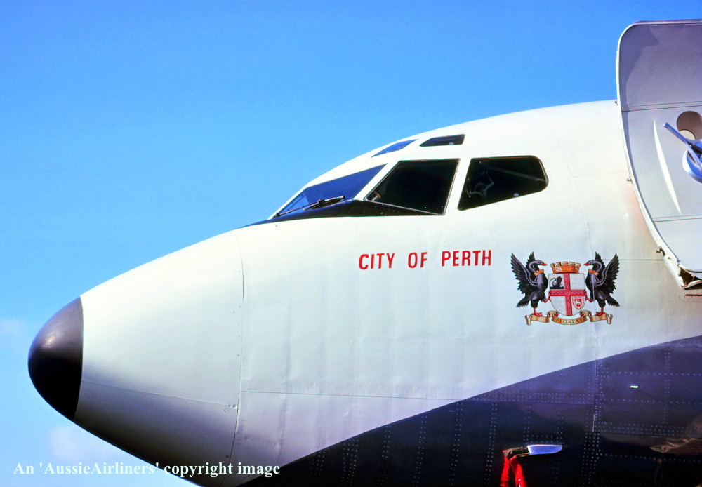 VH-EBE. Qantas Australia's Overseas Airline - 'City of Perth' Coat of Arms. (Qantas Heritage Collection Copyright Image 1950-167.) |