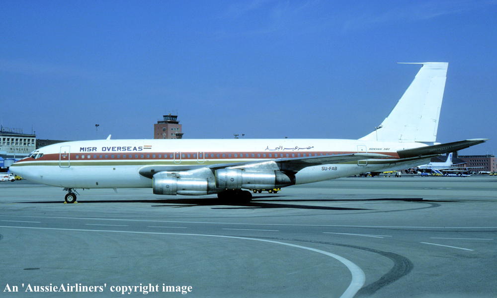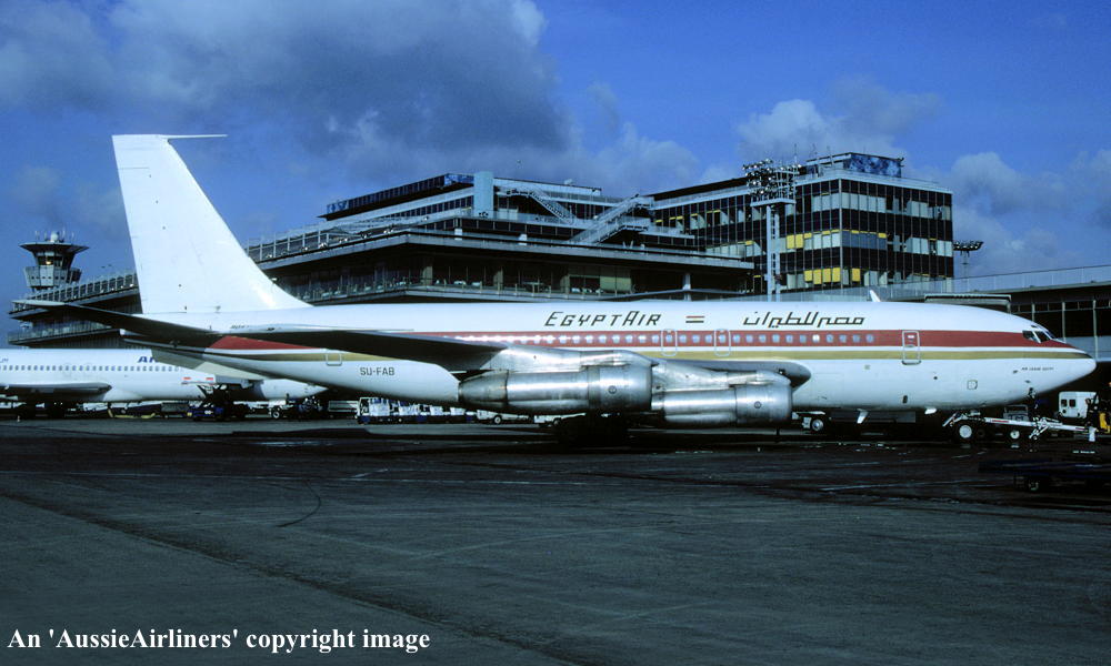 SU-FAB. Misr Overseas - in the basic 'Egyptair' livery at Klohn Airport, April 1984. (R. N. Smith Collection Copyright Image 4604-243.) |