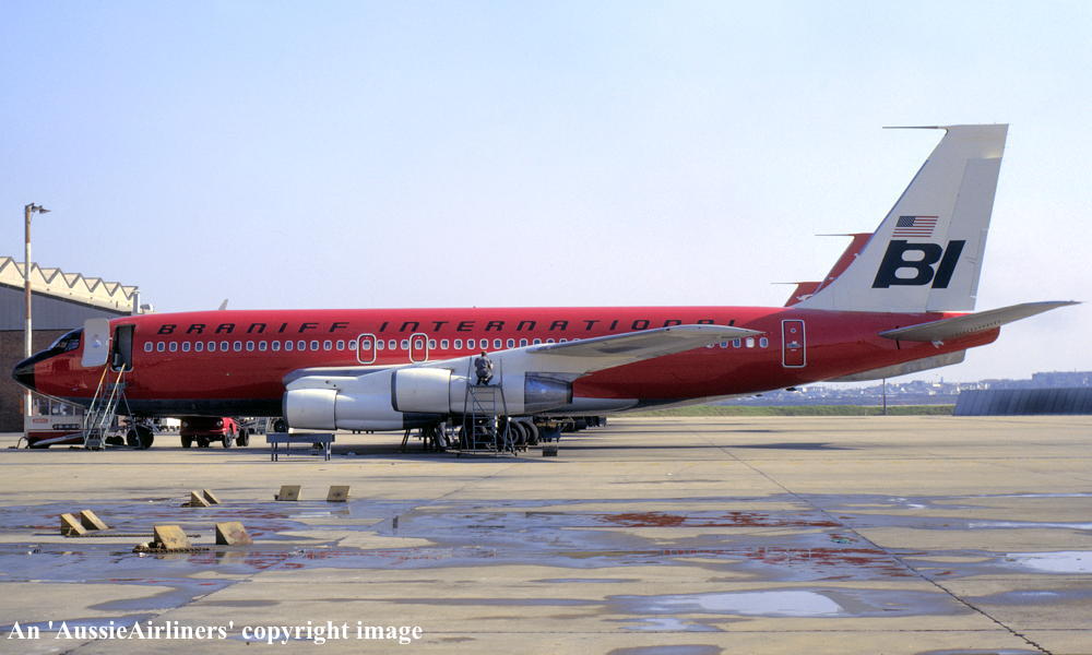 N105BN. Braniff International - in the original livery at Sydney Kingsford Smith Airport, May 1969. (Qantas Heritage Collection Copyright Image 4604-249.) |