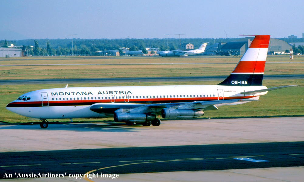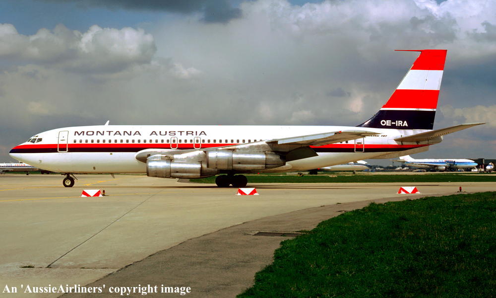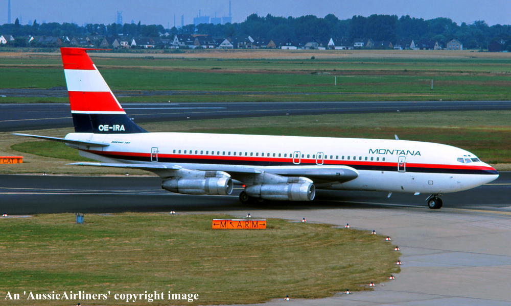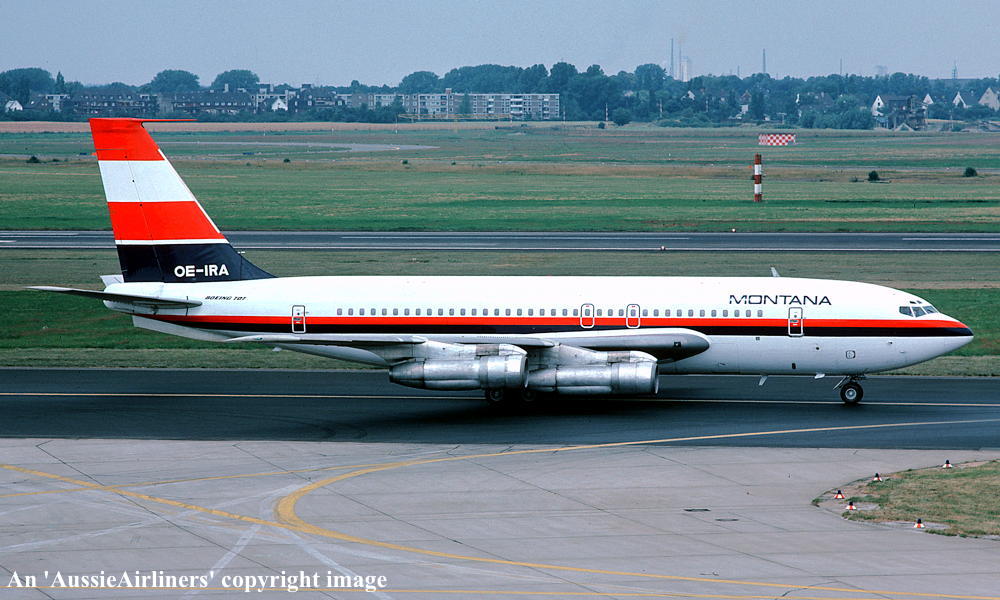 OE-IRA. Montana - in the original livery at Dusseldorf Airport, August 1977. (R. N. Smith Collection Copyright Image 4604-419.) |