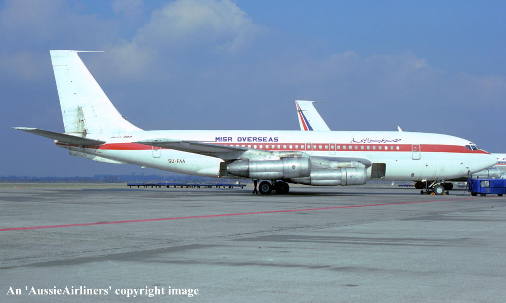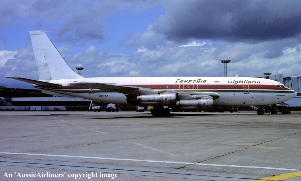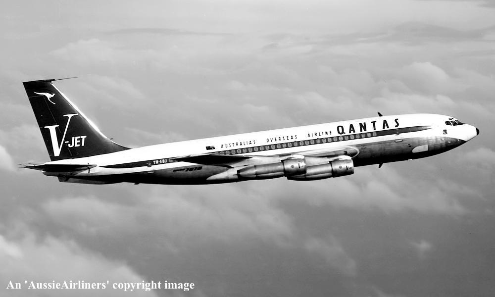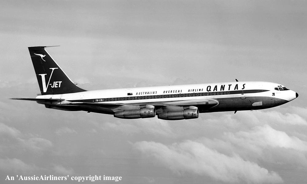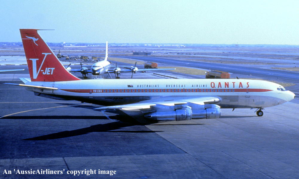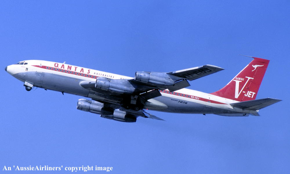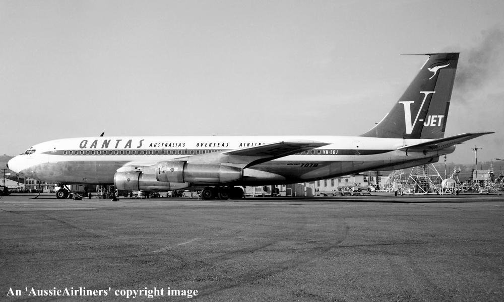 VH-EBJ. Boeing 707-138B. c/n 18069-228. Was also registered as: N106BN; OE-INA; SU-FAA. |