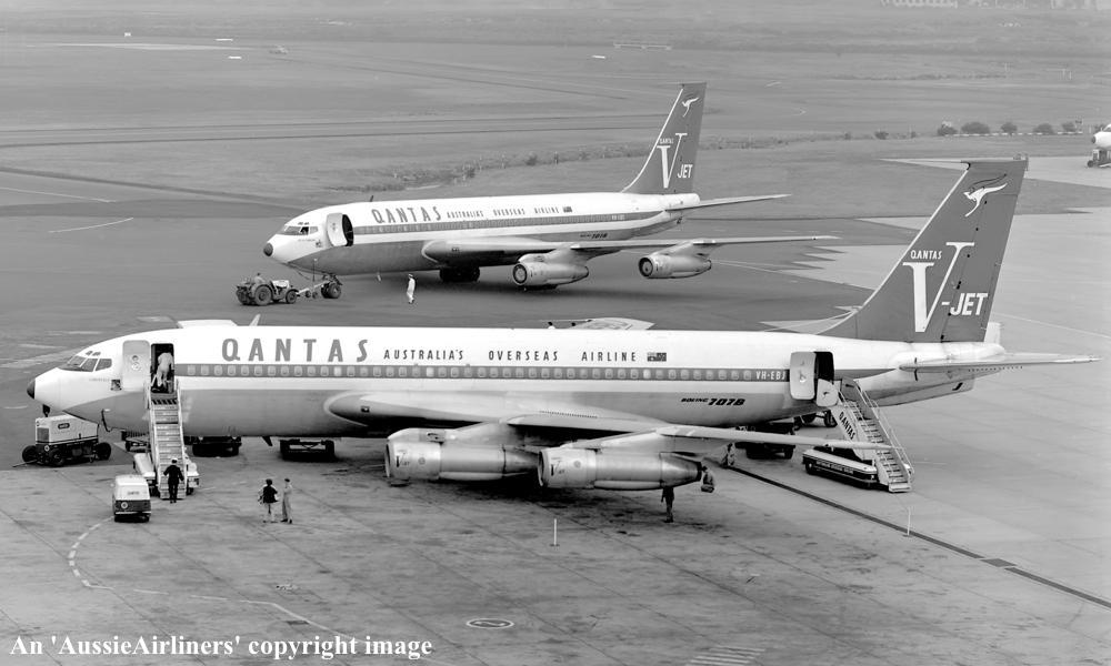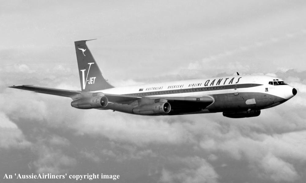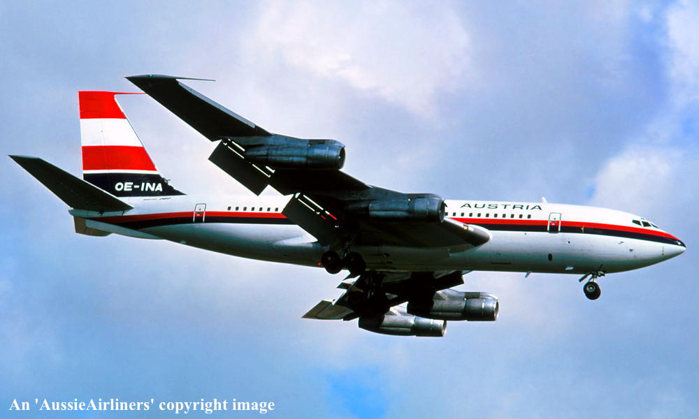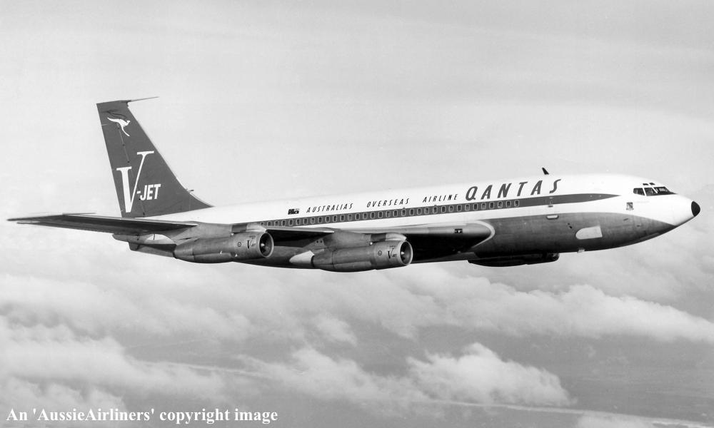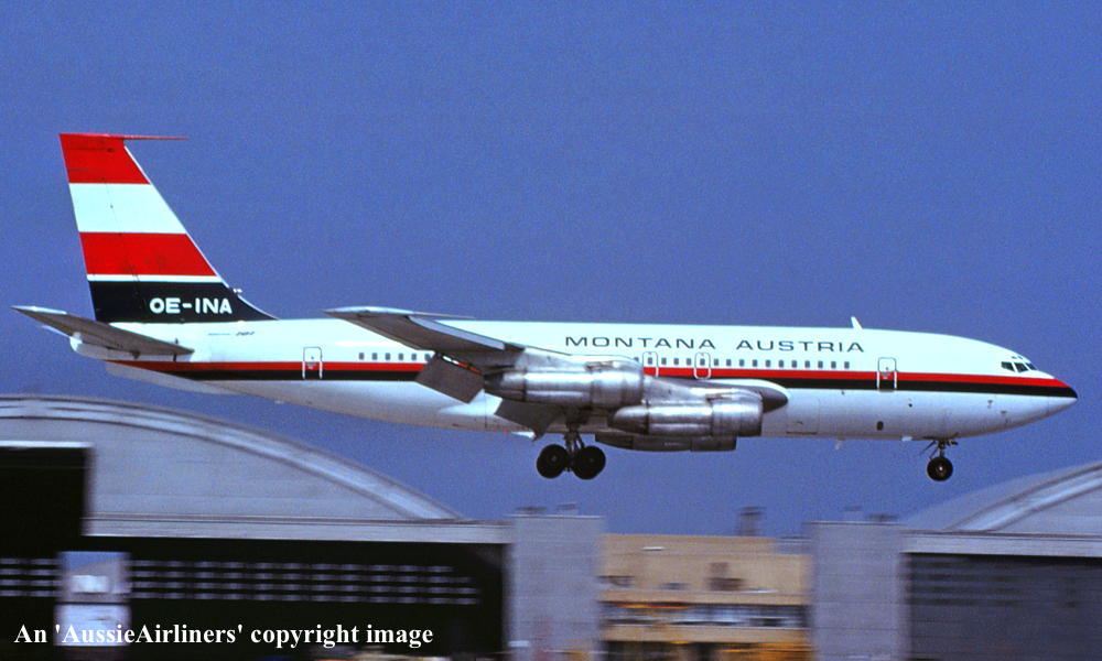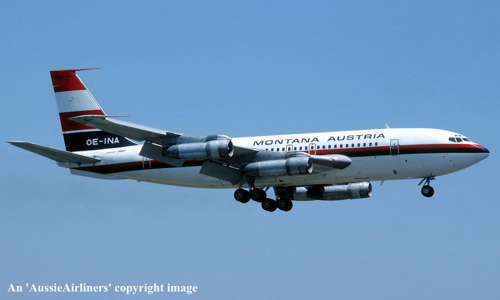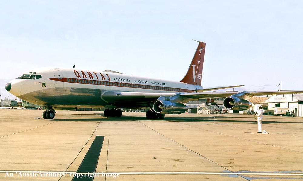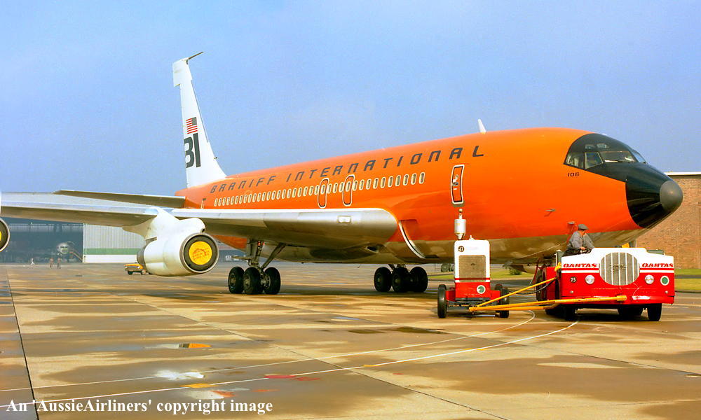 VH-EBJ. Boeing 707-138B. c/n 18069-228. Was also registered as: N106BN; OE-INA; SU-FAA. |