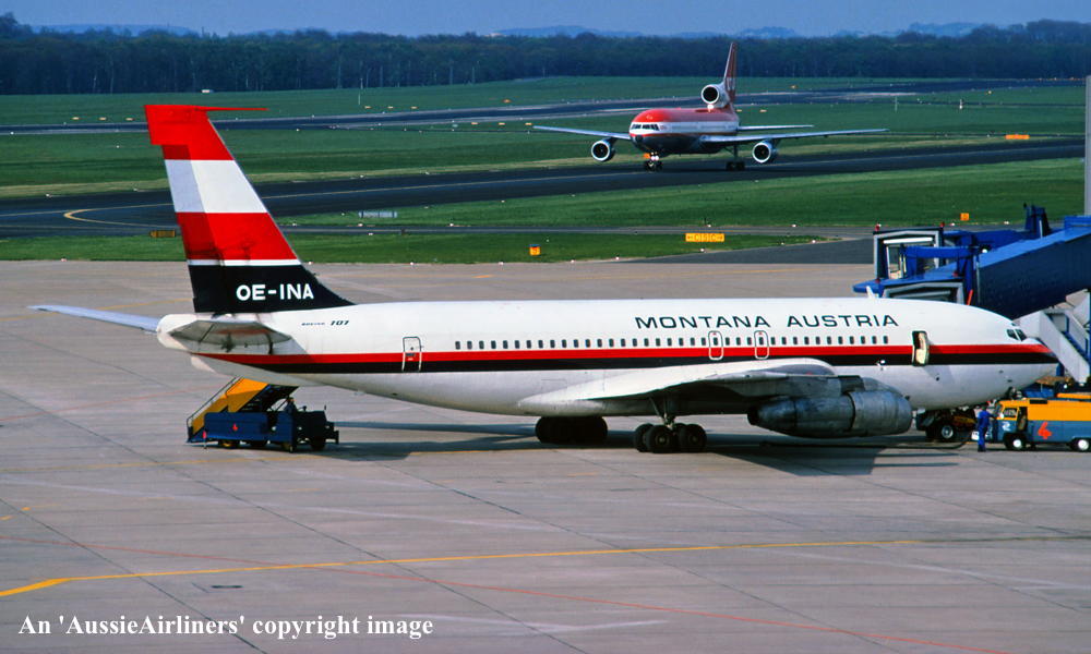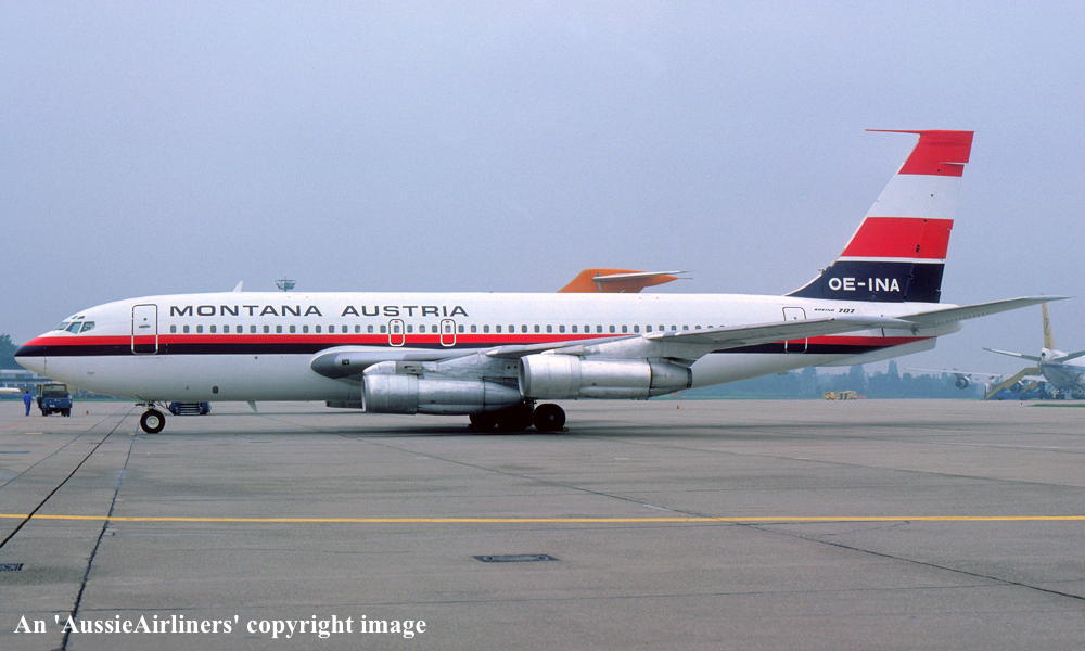 OE-INA. Montana Austria - in the standard livery at New York JFK Airport, October 1979. (R. N. Smith Collection Copyright Image 4605-300.) |