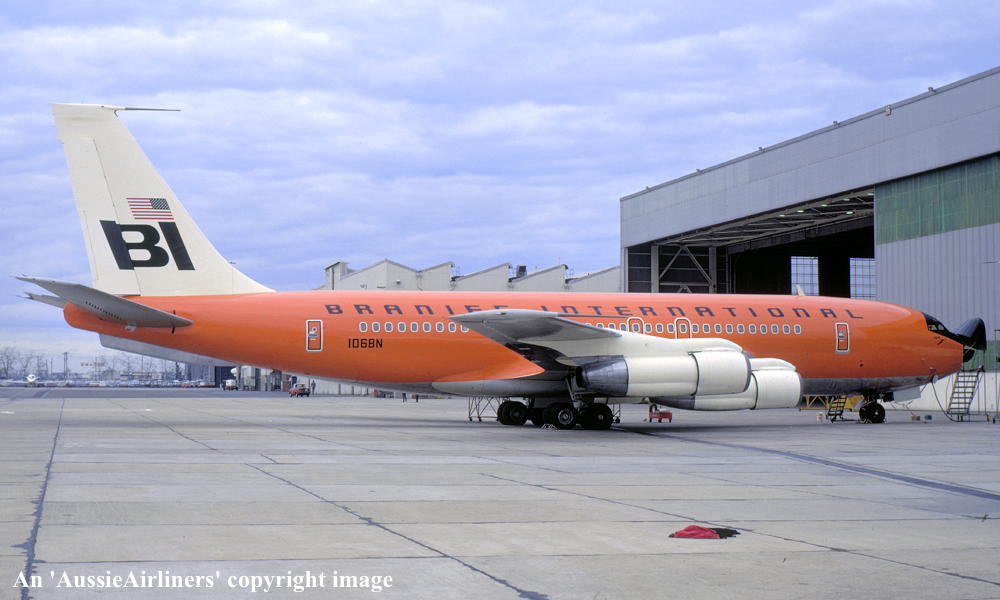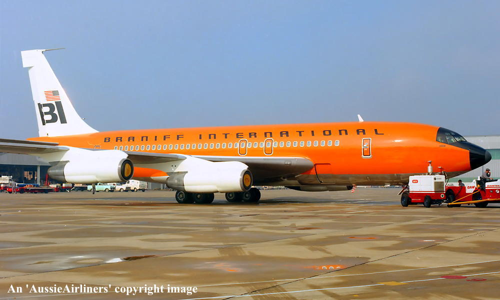 N106BN. Braniff International - in the original livery at Sydney Kingsford Smith Airport, July 1969. (Qantas Heritage Collection Copyright Image 4605-267.) |