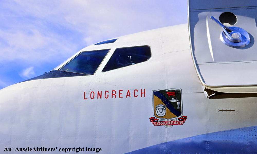 'The Shire of Longreach' coat of arms, as carried on the nose of the aircraft. (Qantas Heritage Collection Copyright Image 1950-178.) |