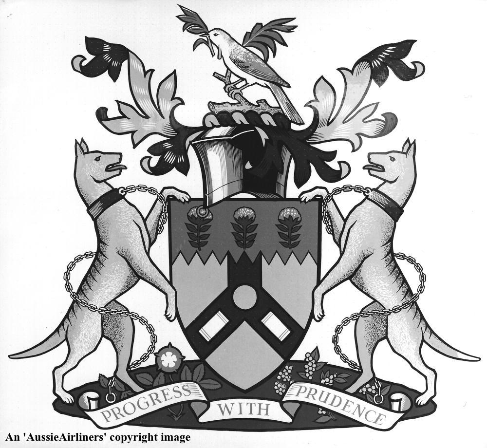 VH-EBM. Qantas Australia's Overseas Airline - 'City of Launceston' Coat of Arms. (Qantas Heritage Collection Copyright Image 1950-174.) |