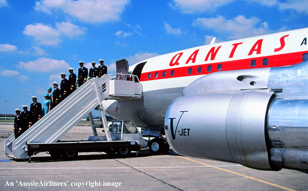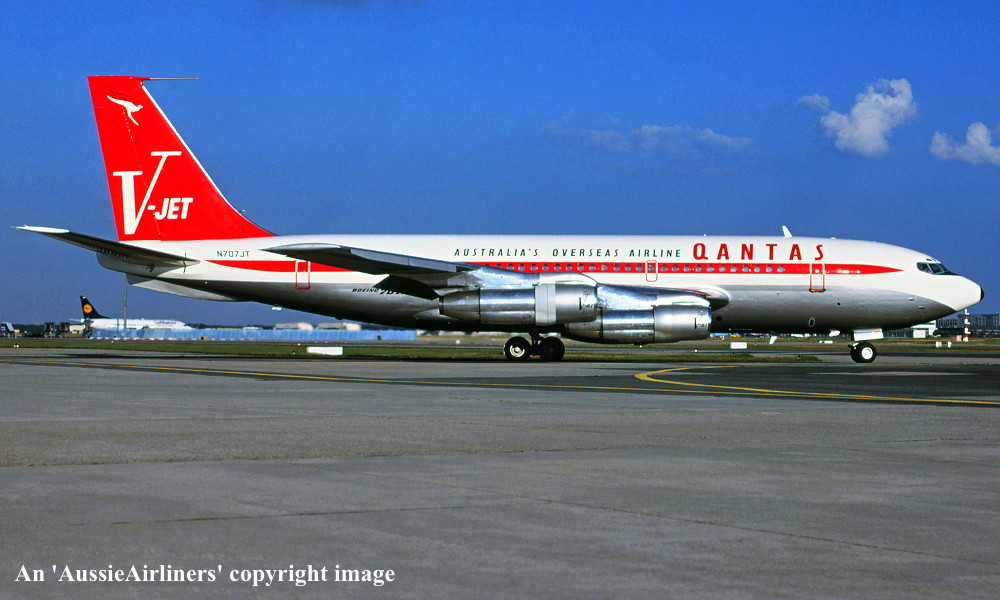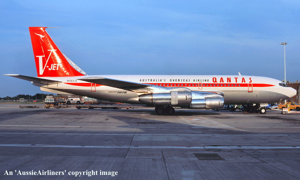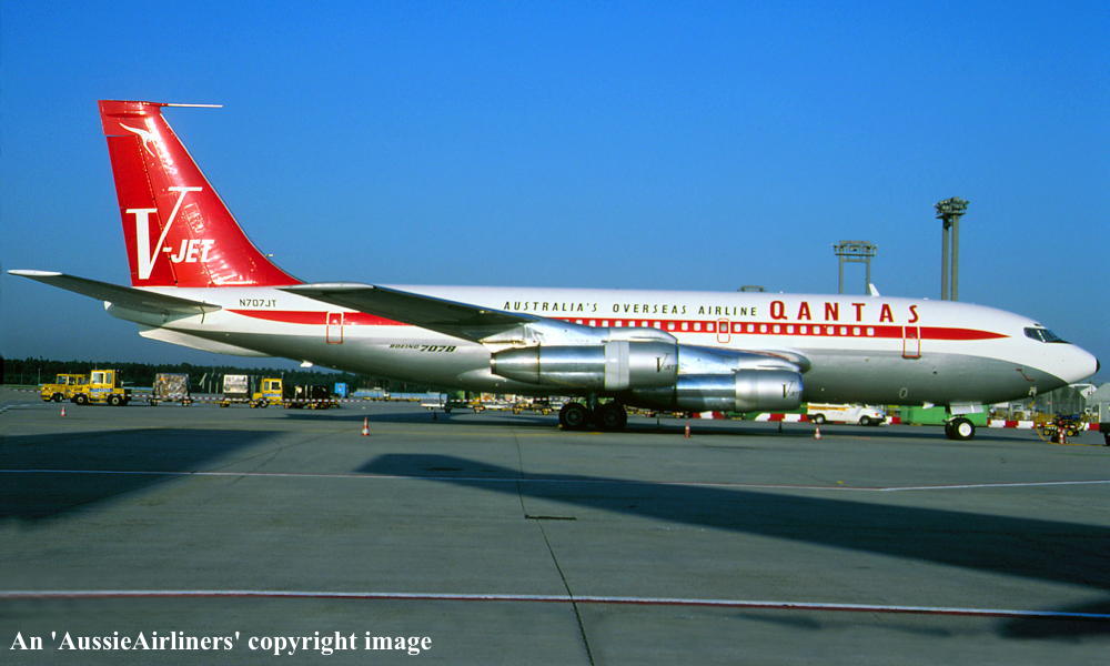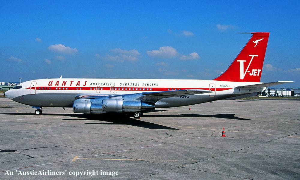 N707JT. Qantas Australia's Overseas Airline - in the original 'V-Jet' livery at Paris Le Bourget Airport, July 2002. (R. N. Smith Collection Copyright Image 4604-175.) |