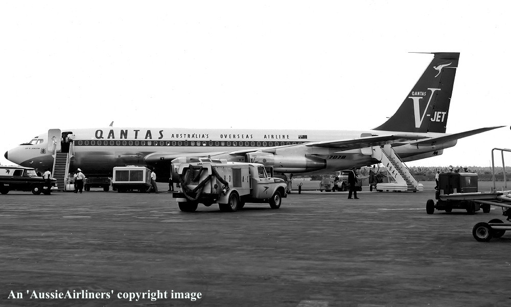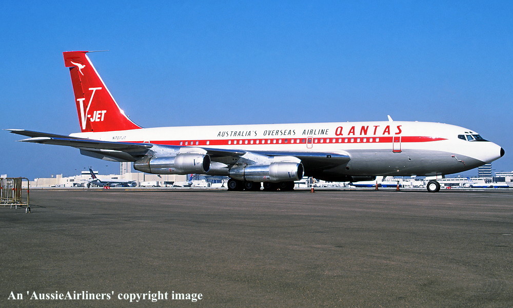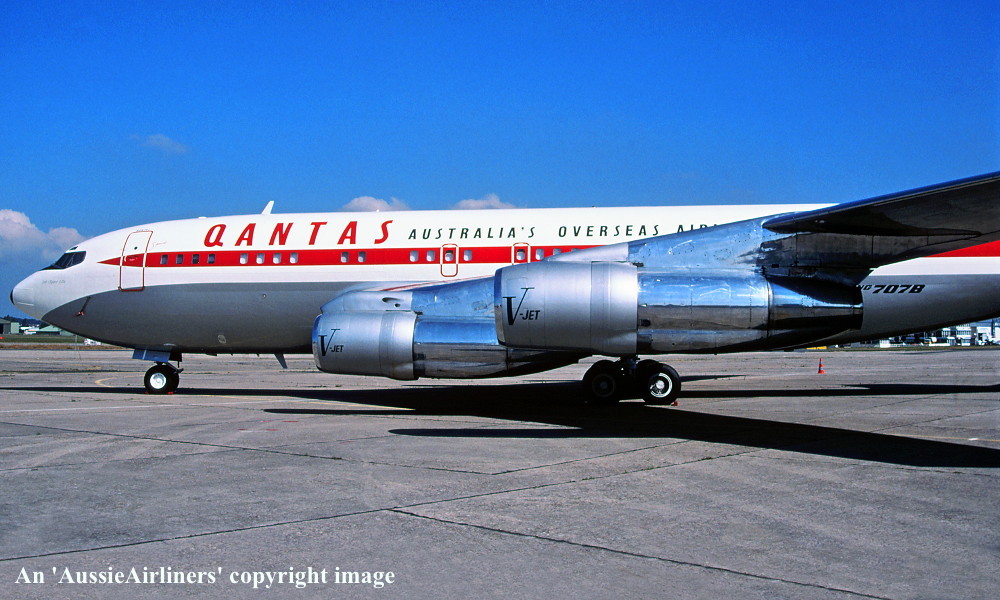 VH-EBM. Boeing 707-138B. c/n 18740-388. Was also registered as: N108BN; N707XX; N707JT. |