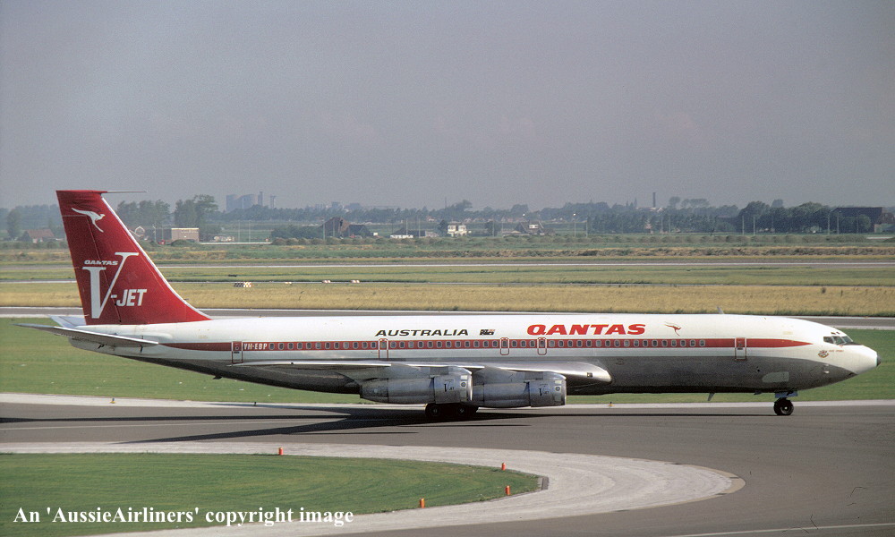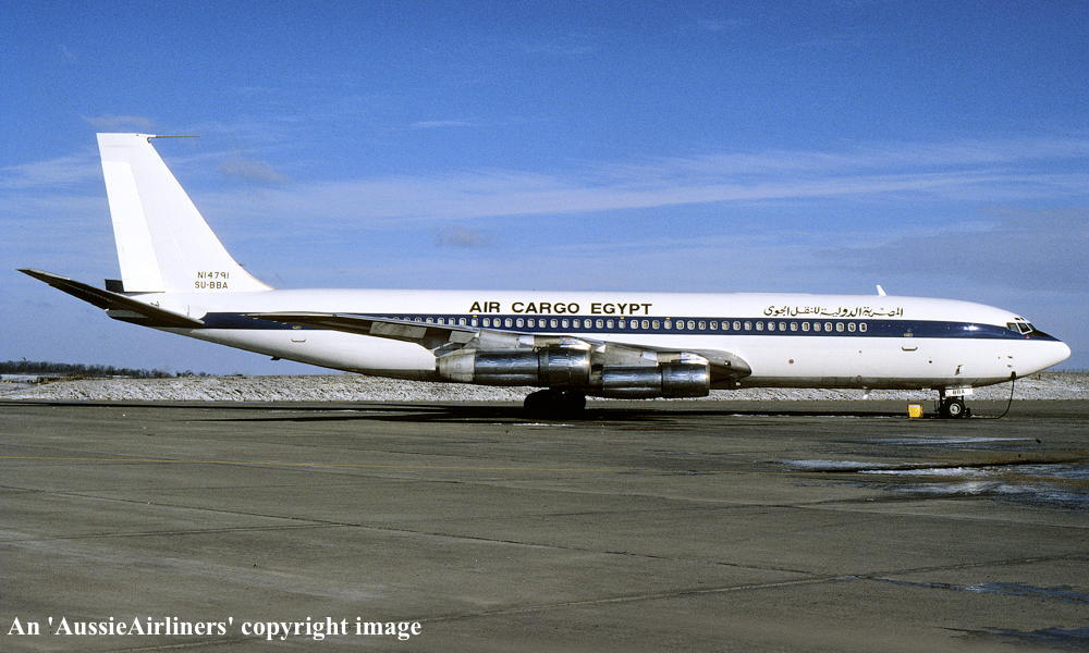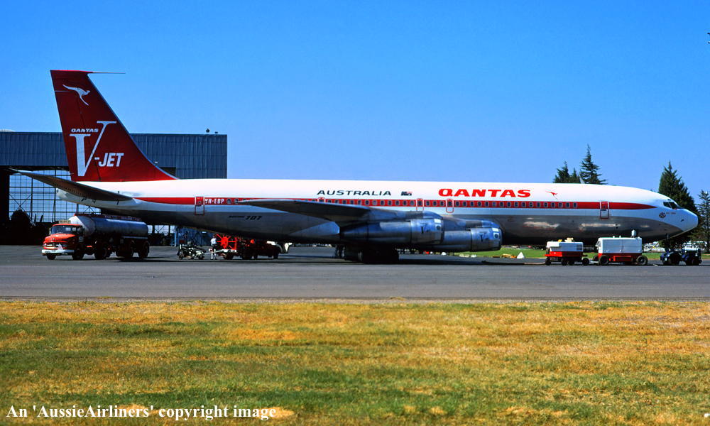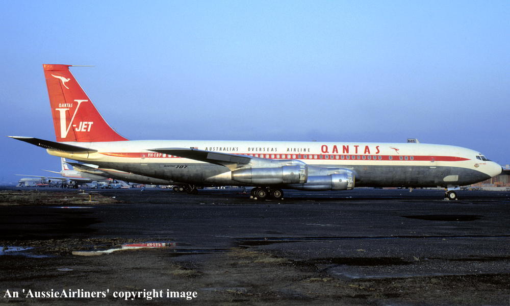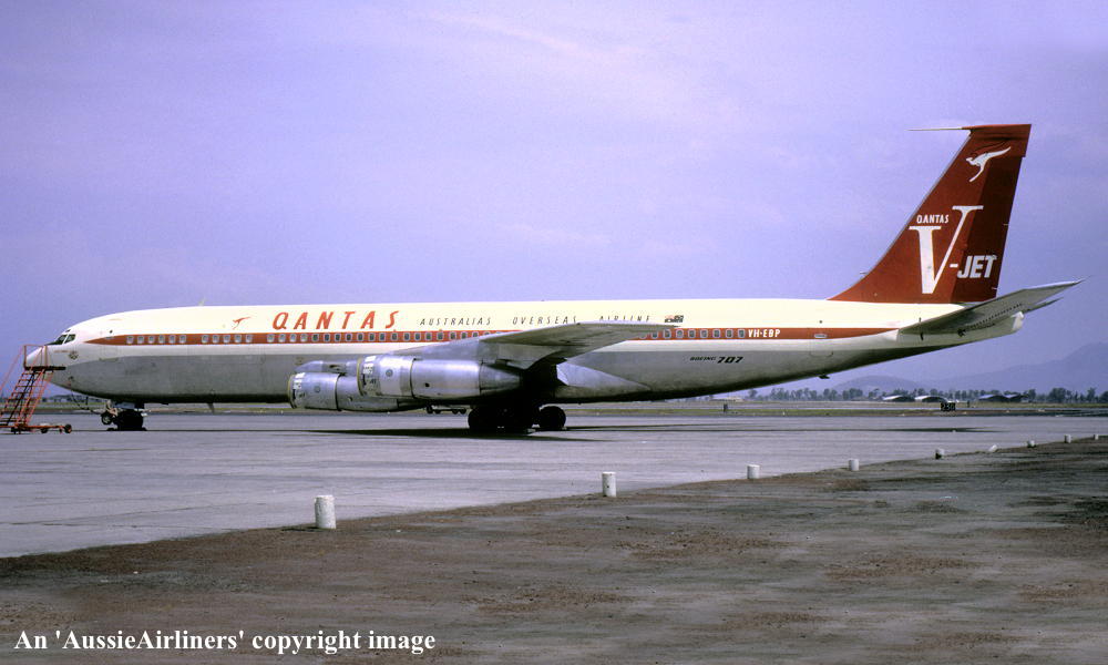 VH-EBP. Boeing 707-338C. c/n 18810-438. Was also registered as: N14791; SU-BBA. |