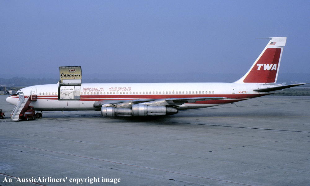 N14791. TWA Trans World Cargo - in the standard livery at an unknown airport, November 1977. (R. N. Smith Collection Copyright Image 4604-205.) |