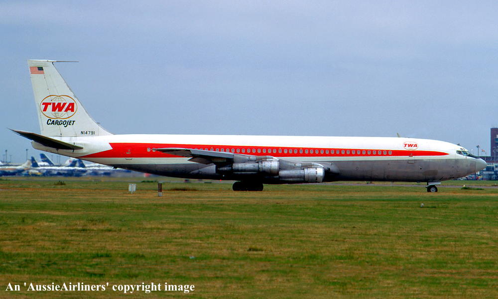 N14791. TWA Cargojet - in the original livery at London Heathrow Airport, June 1973. (R. N. Smith Collection Copyright Image 4605-219.) |